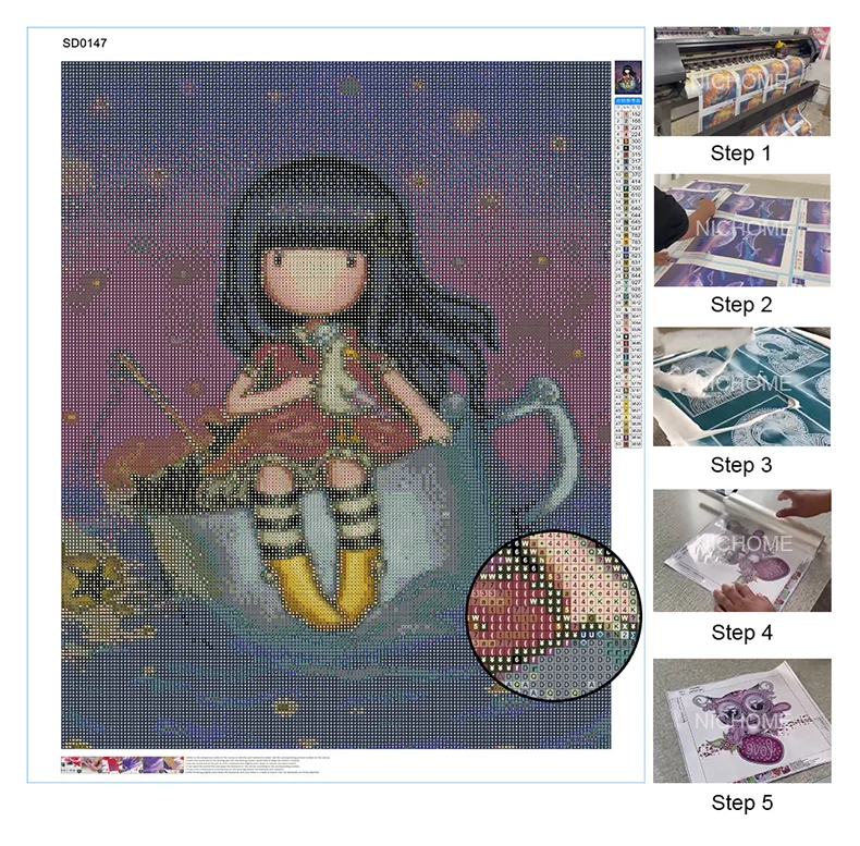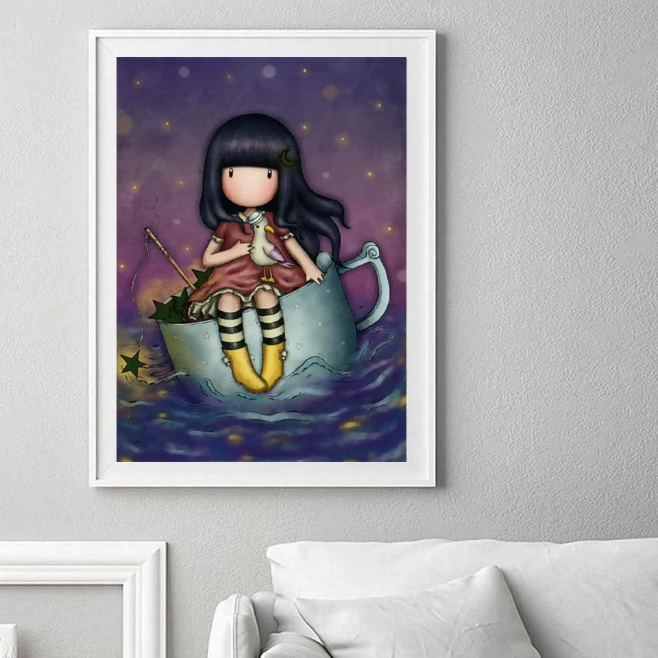 Алмазная 5D картина с мультяшным изображением девочки, полноразмерн...