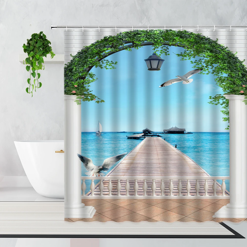Занавеска для душа с морским пейзажем, водонепроницаемый тканевый ш...