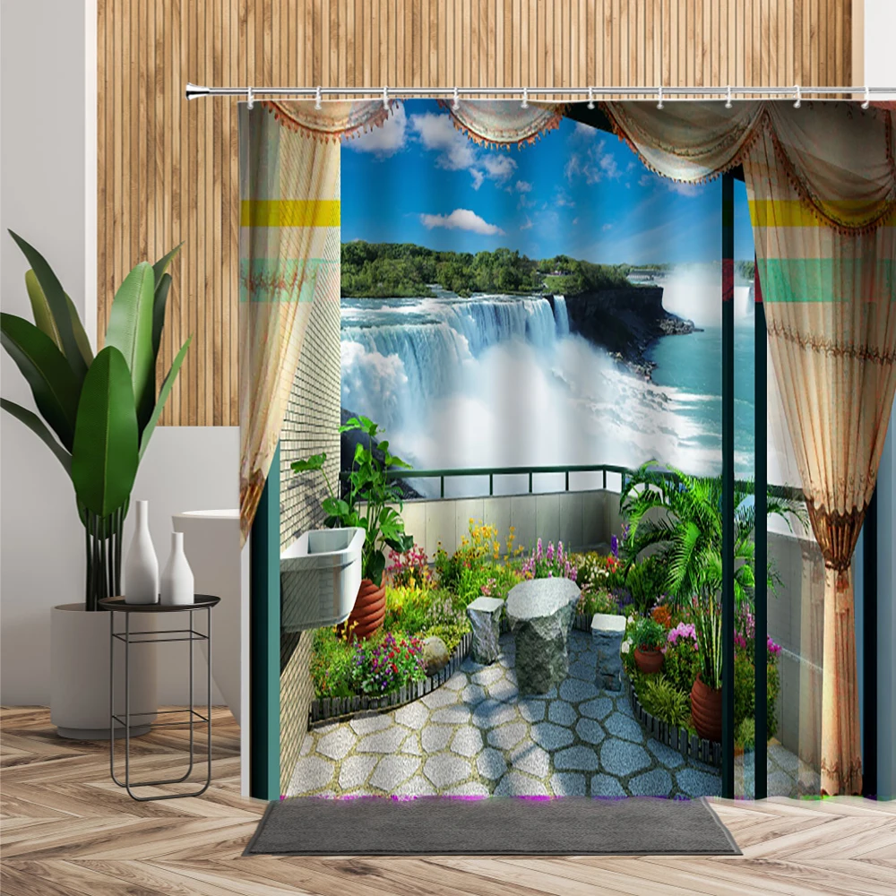 Тканевая занавеска для душа, с 3d-изображением водопада, джунглей, ...