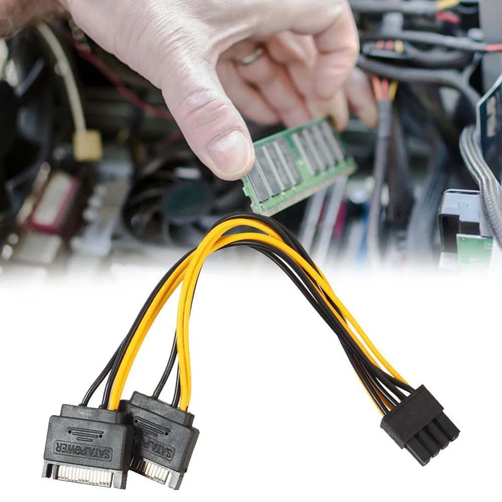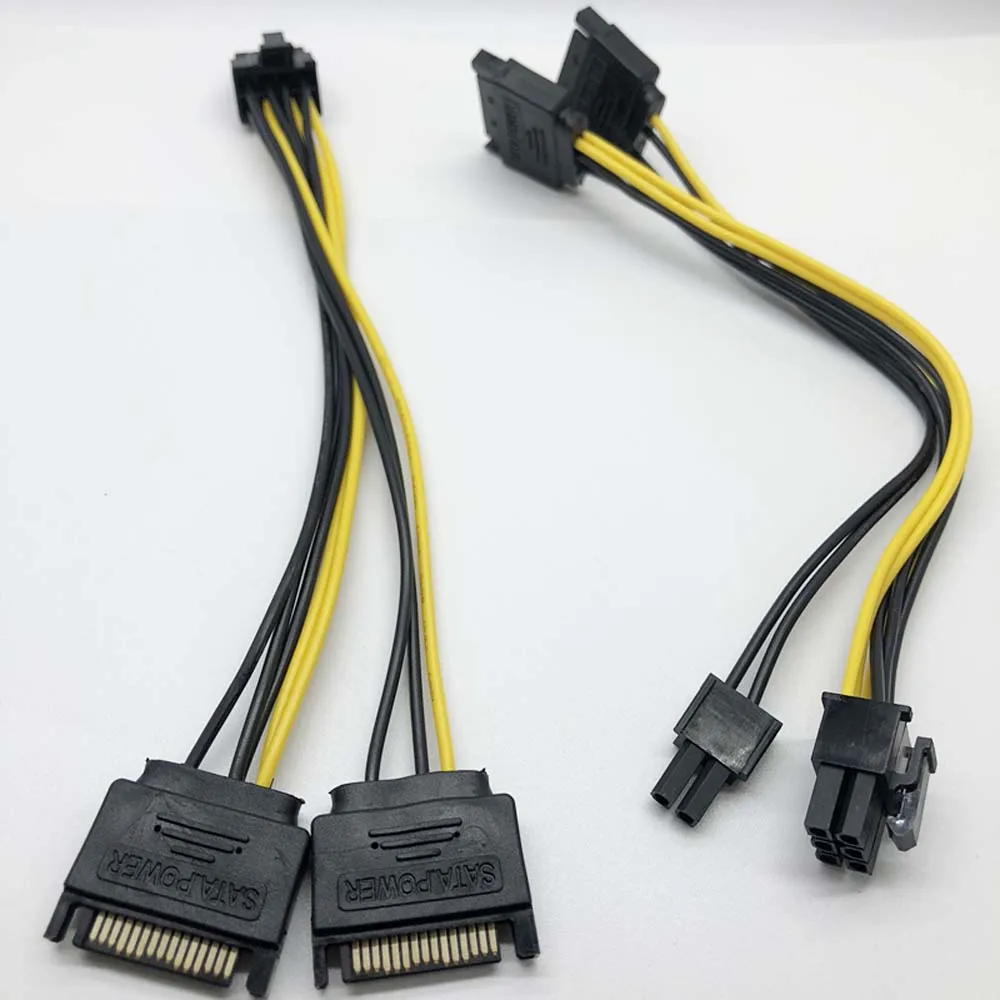 Кабель питания для видеокарты SATA 2x15PinPCI-E PCIE 68 Pin, 68 Pin на двойной Sata Y-разветвитель, 20 см 18AWG