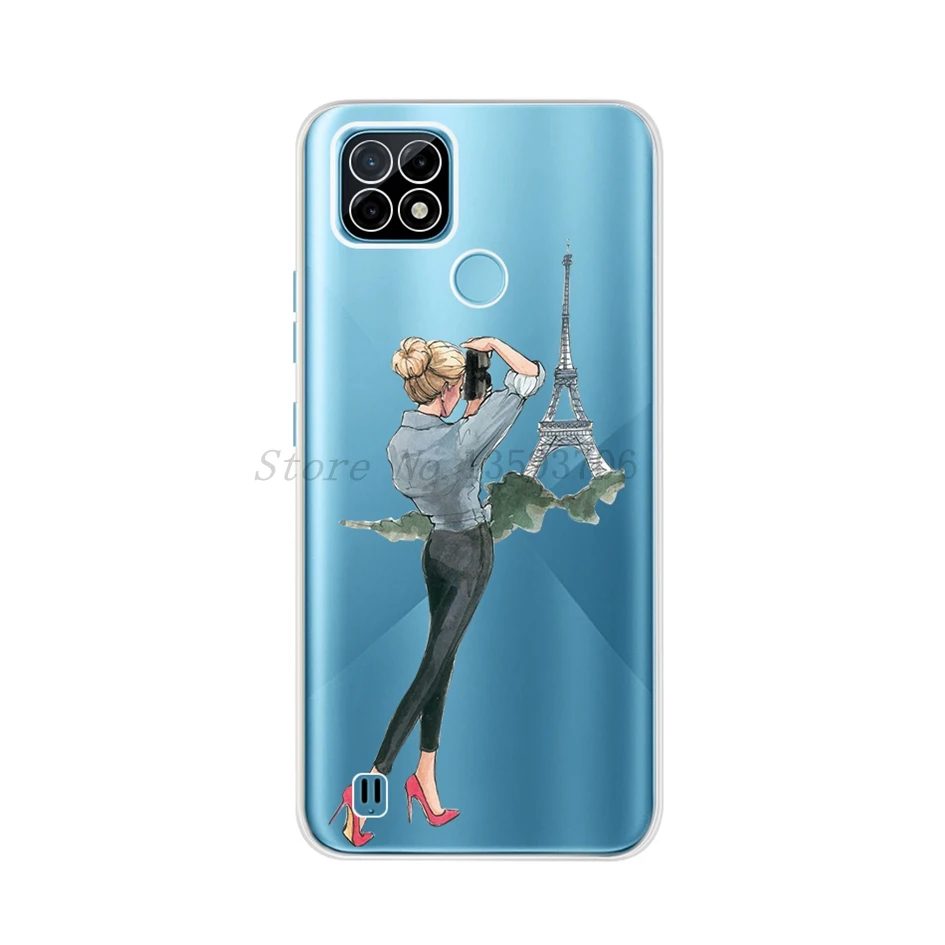 Мягкий силиконовый чехол для Realme C21, милый женский чехол для Op...