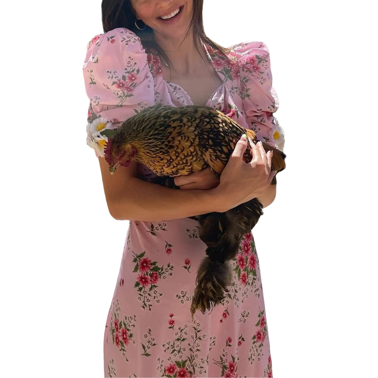 Женское длинное розовое платье, Красивое Летнее платье с цветочным принтом, V-образным вырезом и коротким пышным рукавом для дам, SMLXL