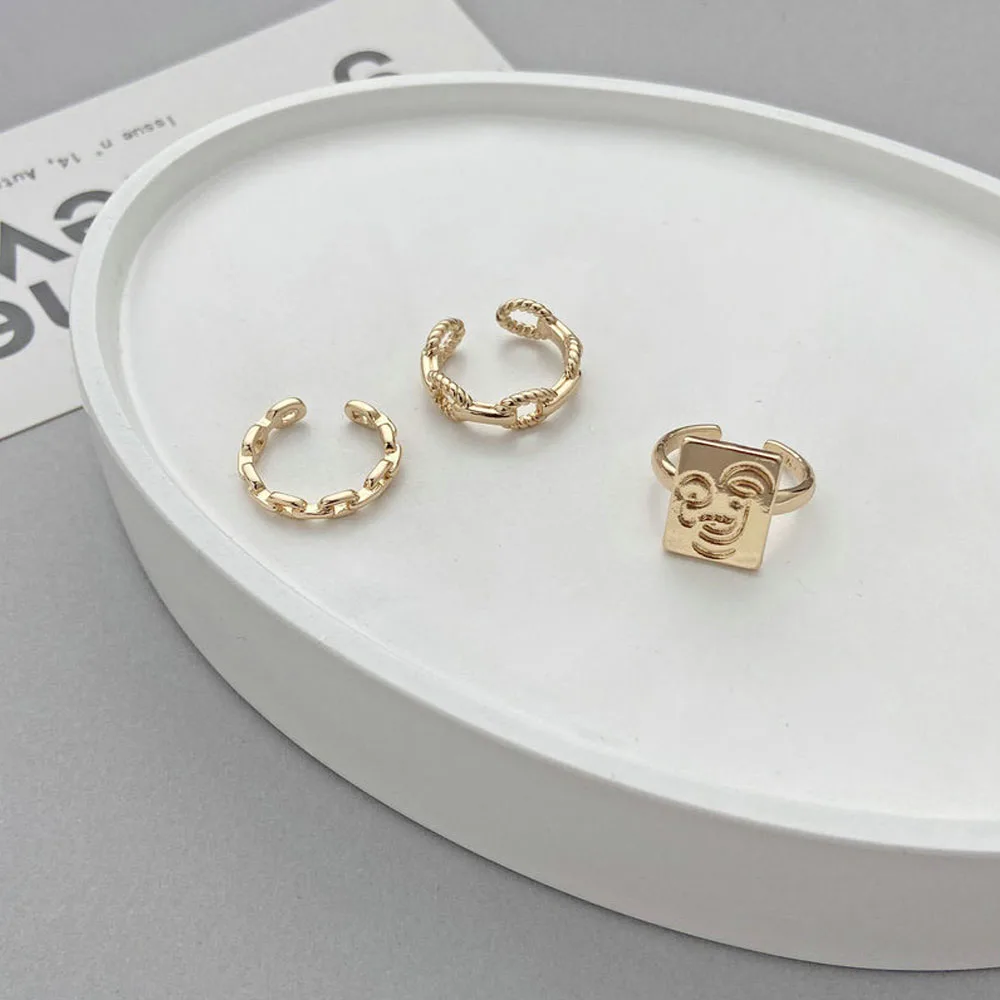 3 шт.компл. новый дизайн ремешке-цепочке Открытое кольцо для женщин, модные корейские драгоценности Необычные Свадебная вечеринка кольцо для девочек аксессуары для пальцев