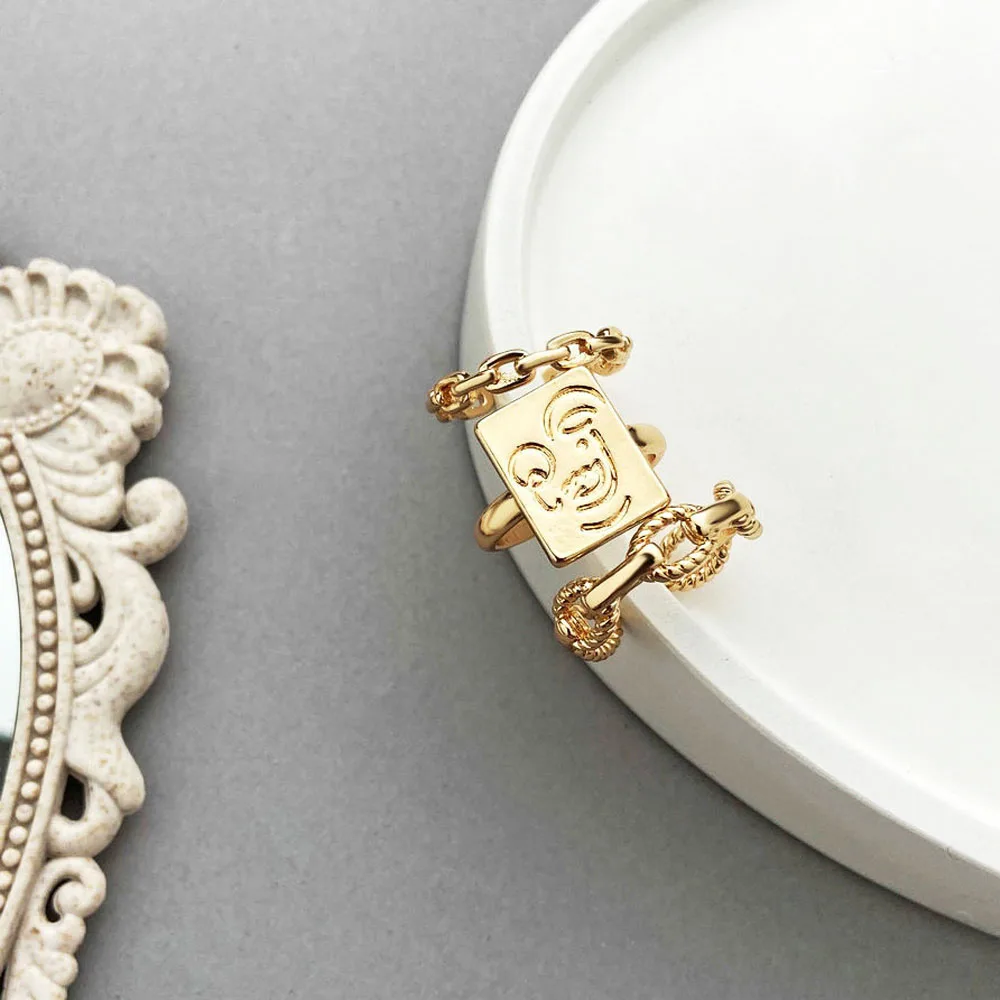 Женское плетеное кольцо со смайликом, корейское Золотое кольцо в ев...