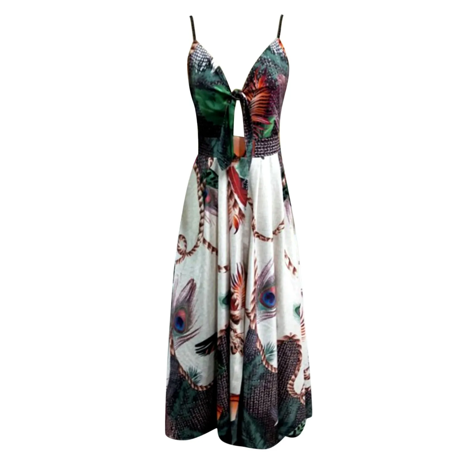 Платье женское длинное с высокой талией, V-образным вырезом и открытой спиной