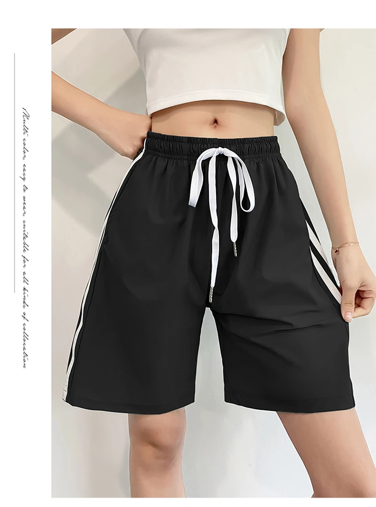 Летние женские свободные шорты, прямые повседневные шорты, студенческие спортивные простые Стильные быстросохнущие шорты для бега и тренировок