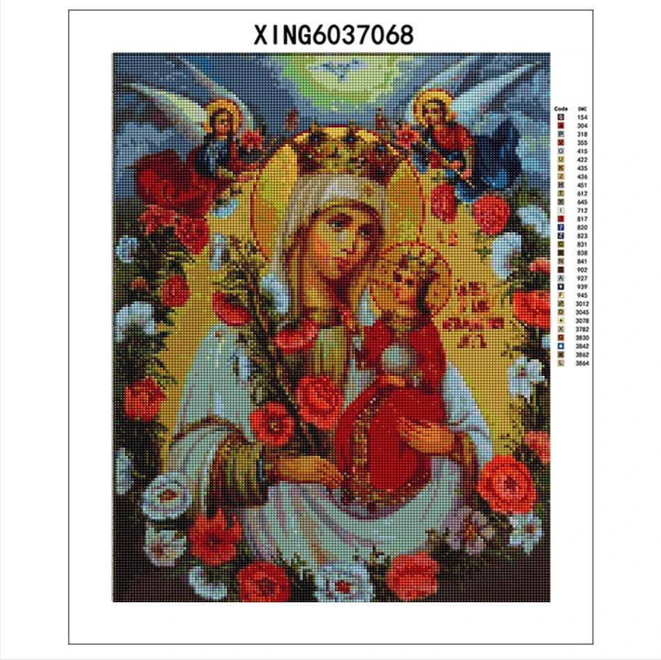 Холст Размеры 5d камни в форме ромбаНабор для рисования с круглыми камнями и полотном Живопись Иисус, Дева Мария значок мозаичная картина, выполненная в технике алмазной вышивки цветок религиозная, портретная