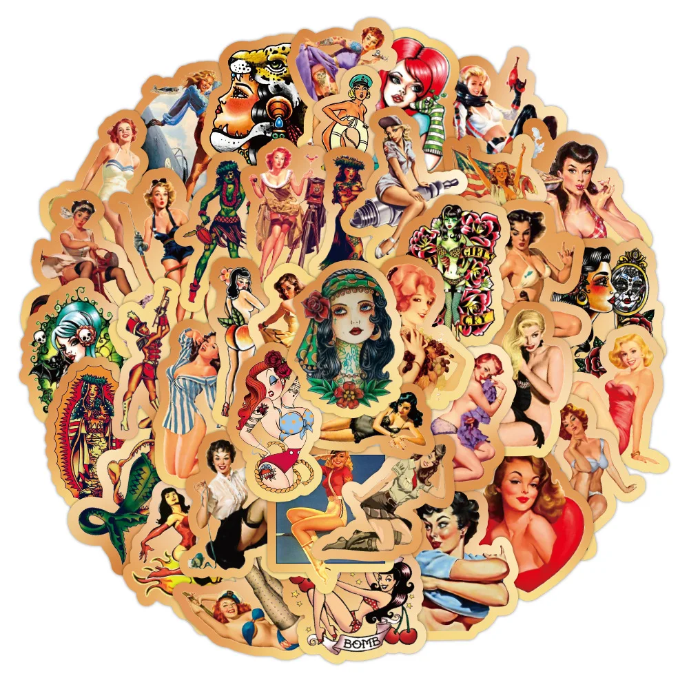 Номер модели50pcs Vintage Sexy Girl Stickers For Notebooks Stationery Laptop