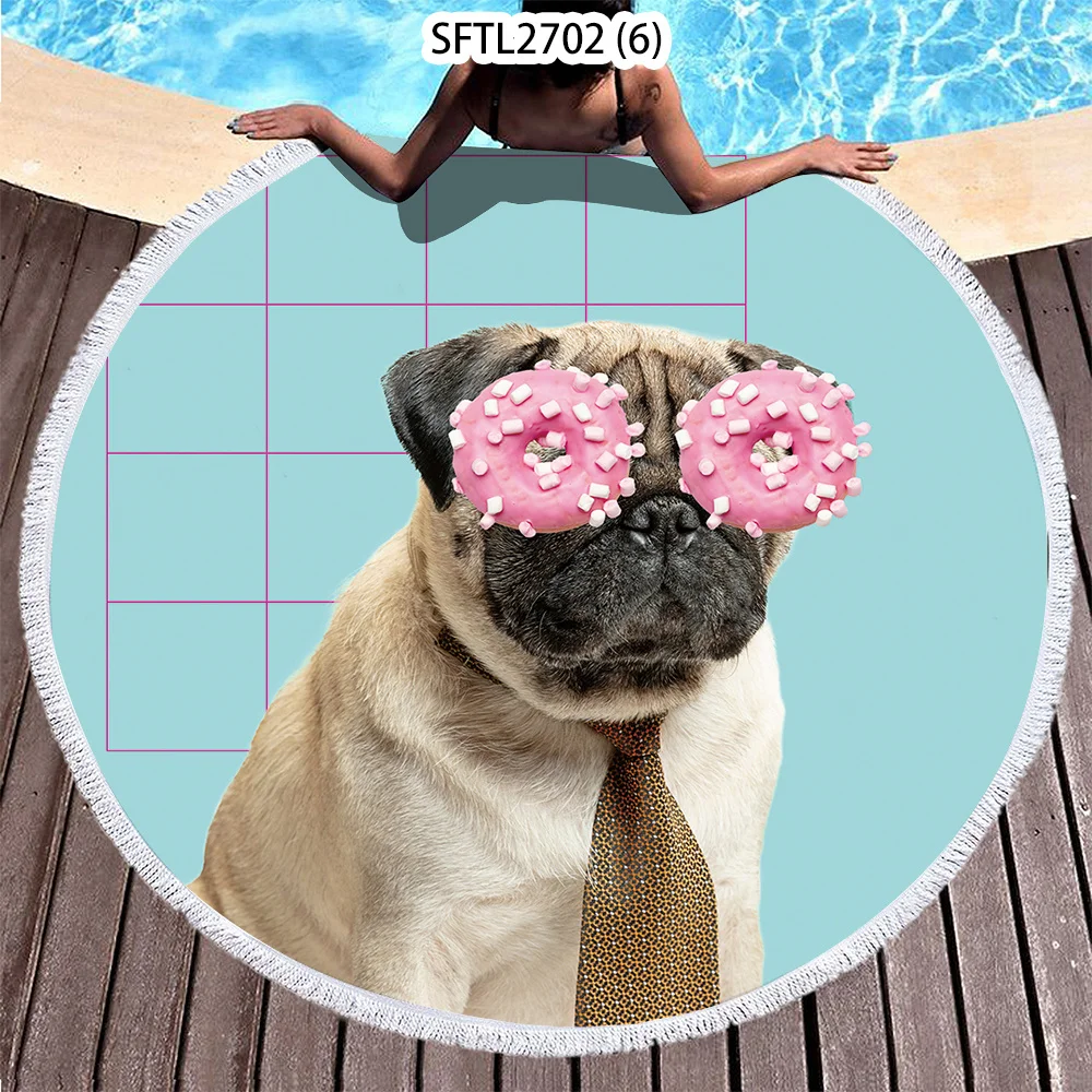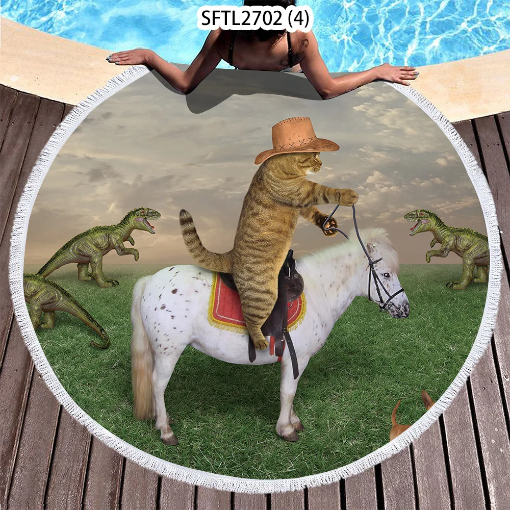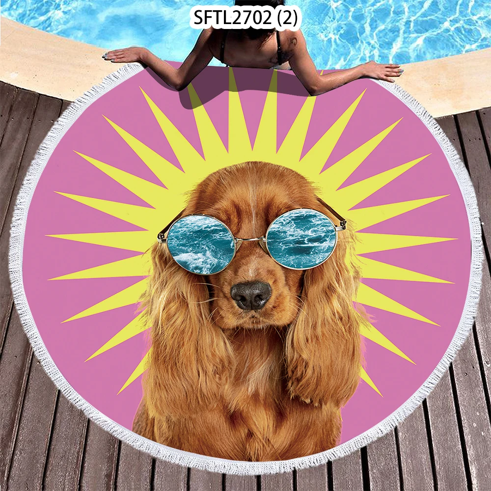 Круглое пляжное полотенце из микрофибры с рисунком животных, 150 см
