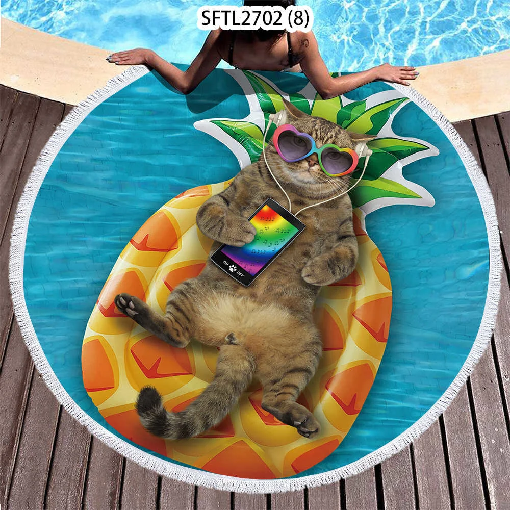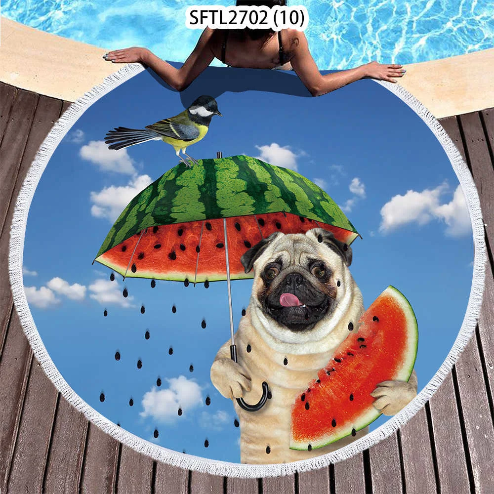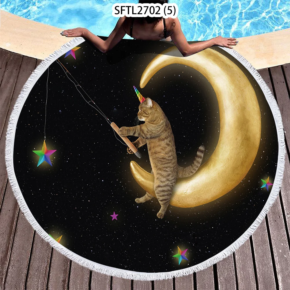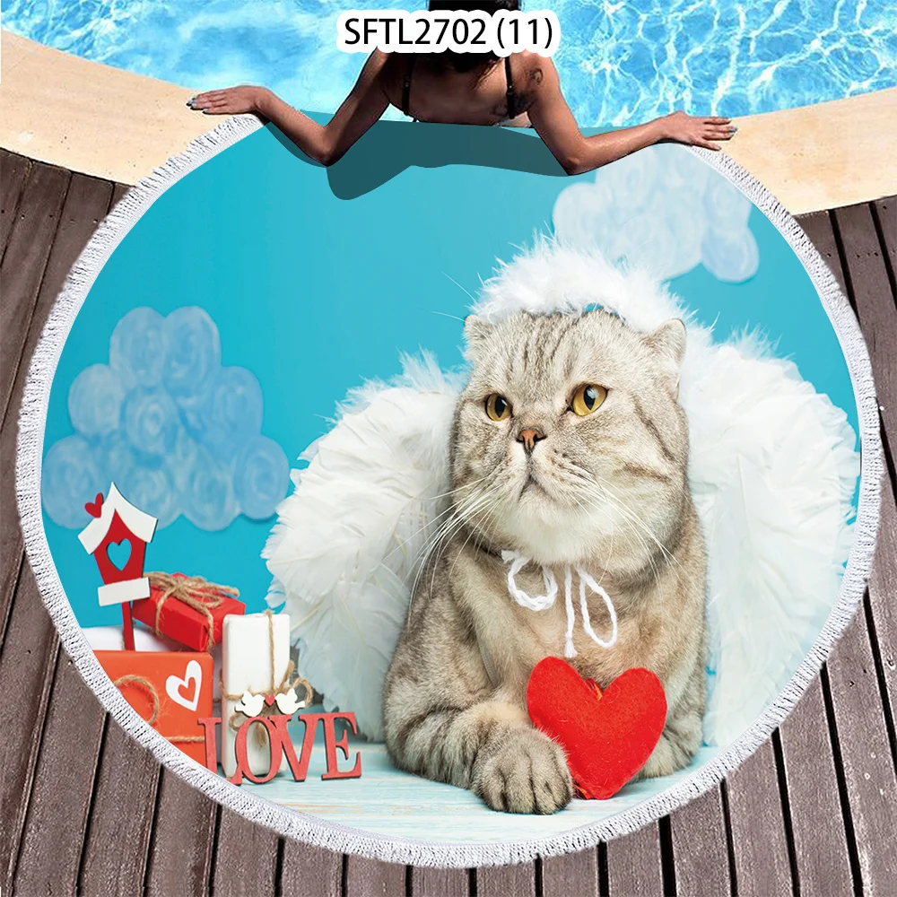 Круглое пляжное полотенце из микрофибры с рисунком животных, 150 см