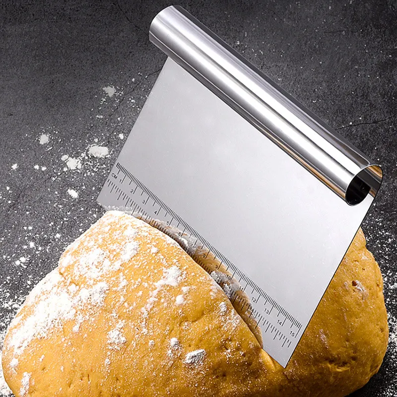 Лидер продаж, скребок для чаши из нержавеющей стали, измельчитель, кухонный скребок для еды, скребок для глазировки, лезвие с мерными весами для теста, торта, пиццы