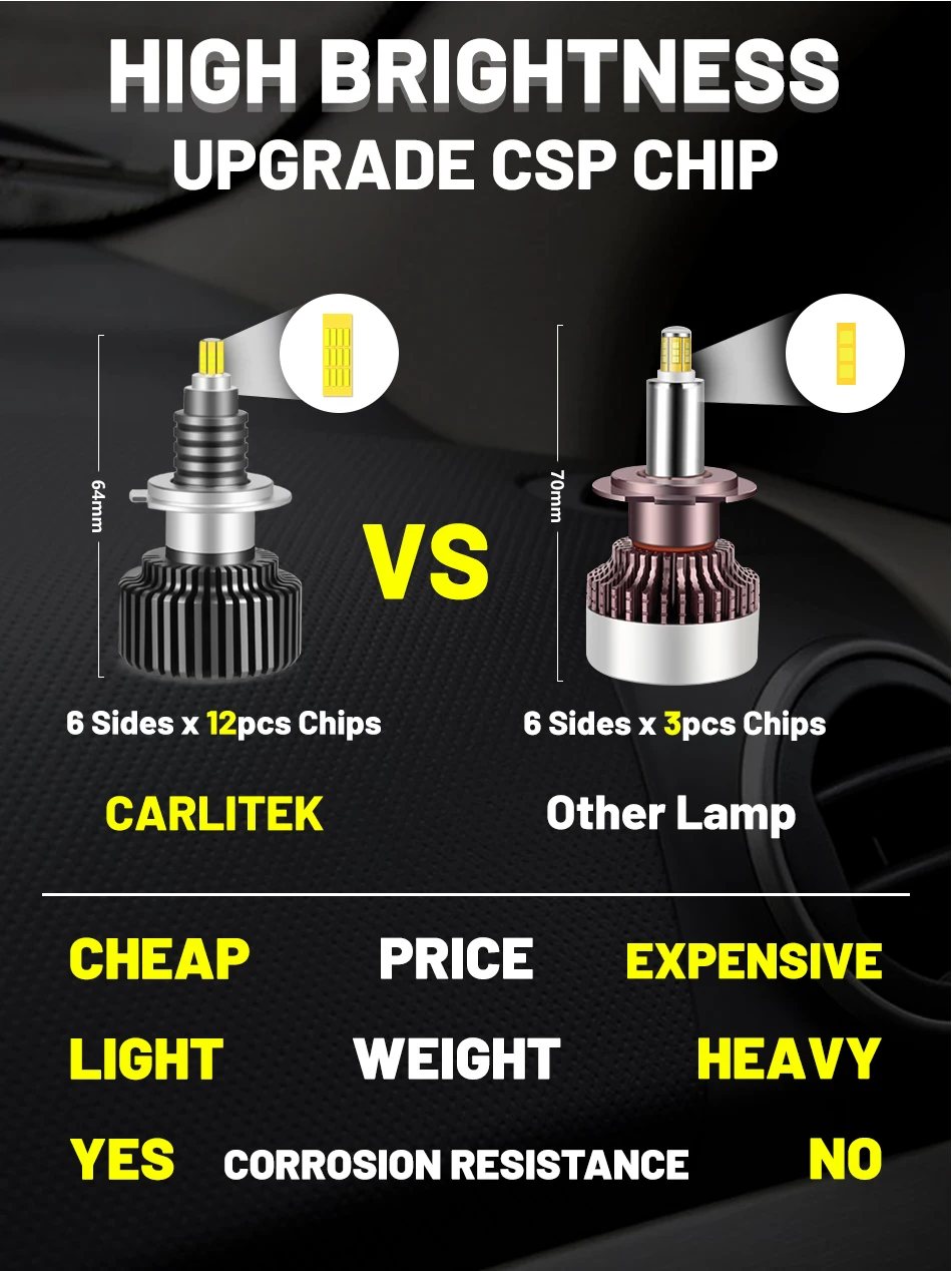 Светодиодная лампа для фар Carlitek 9012 лм Canbus 360 CSP LED H7 H...