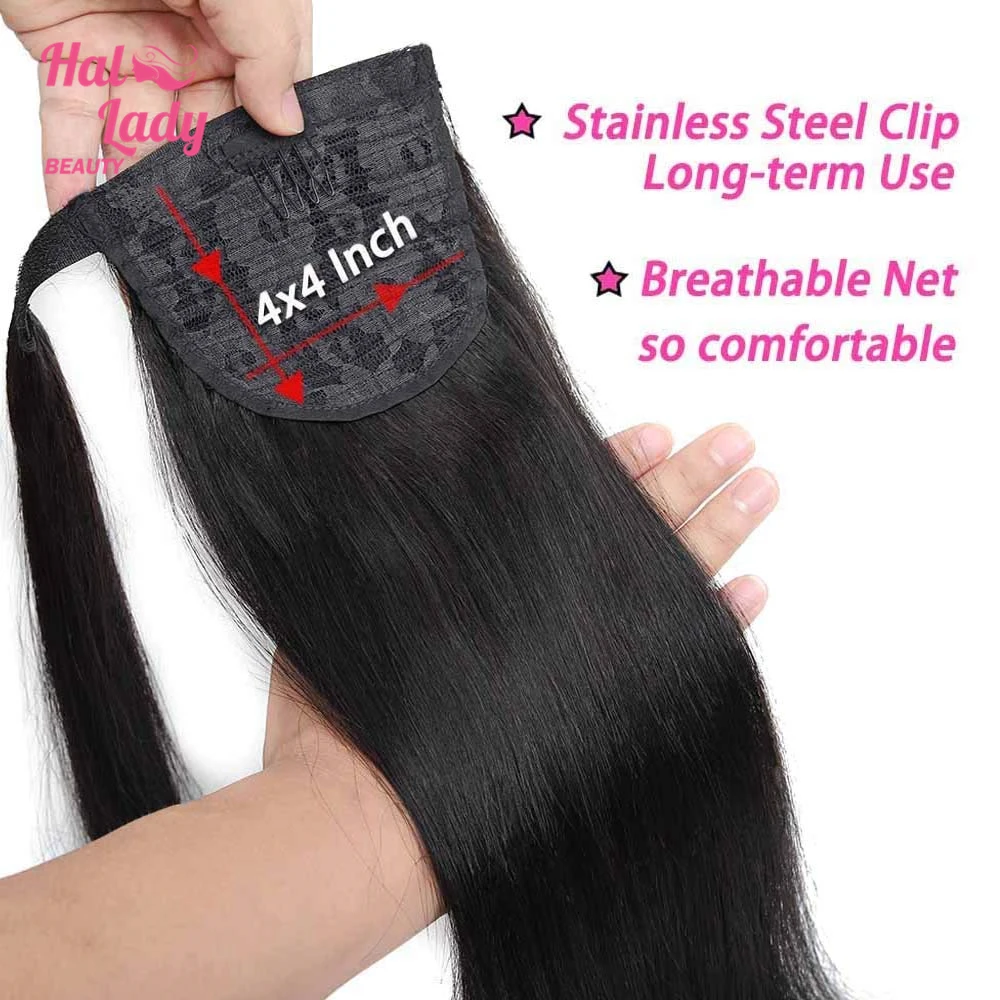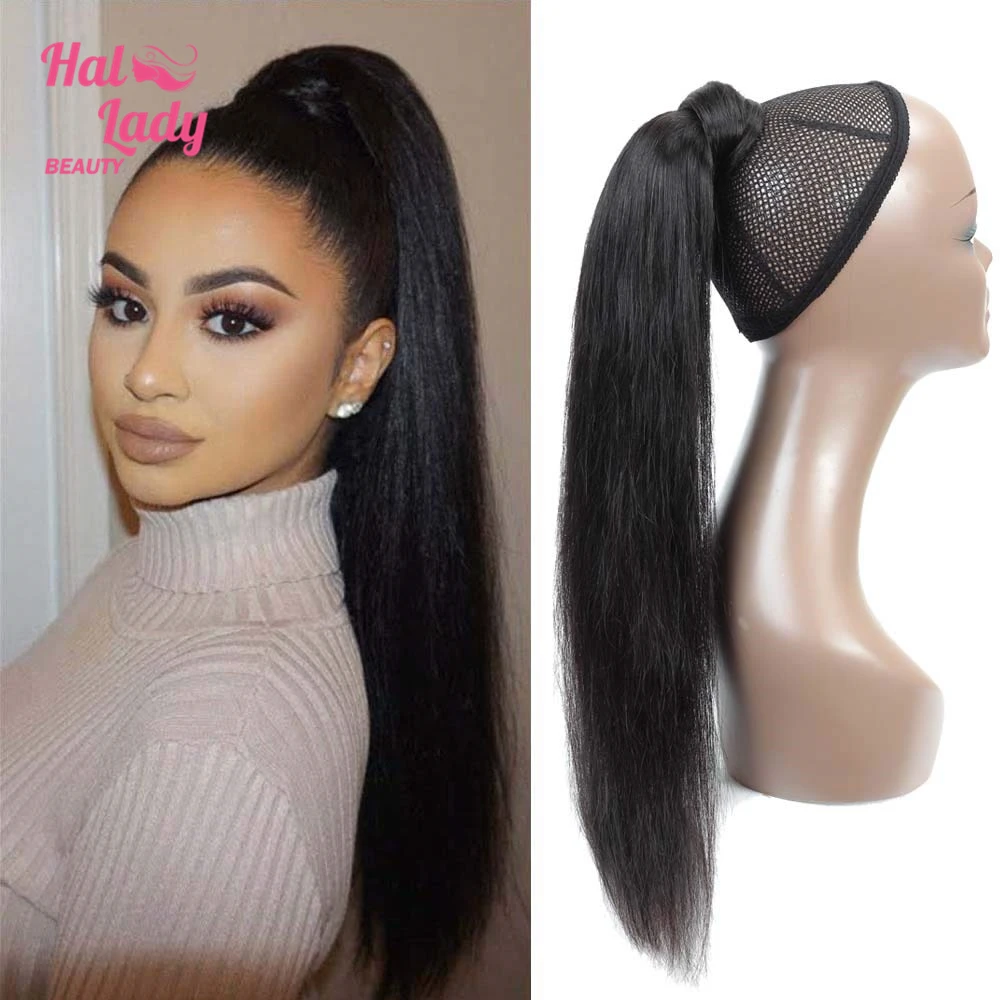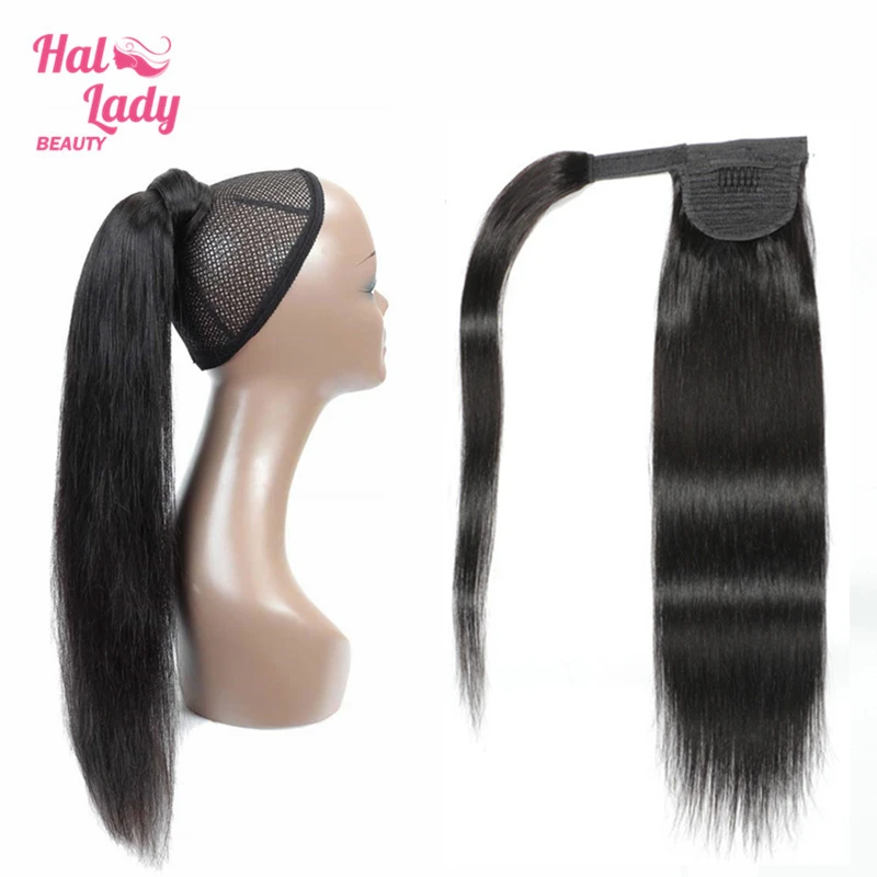 Накладной хвост Halo Lady на заколке для конского хвоста, наращивание конского хвоста, бразильские человеческие волосы, Длинные прямые шиньоны без повреждений