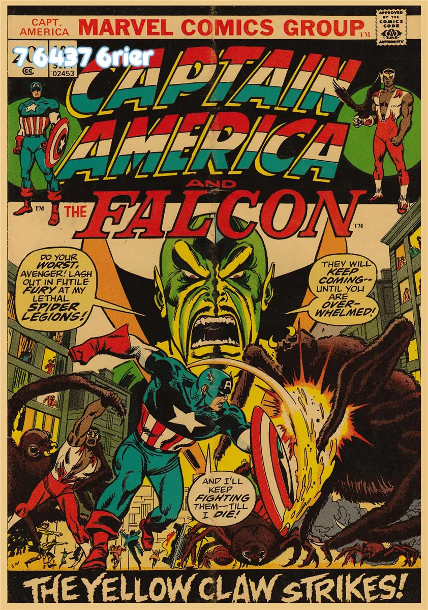 Постер из крафтовой бумаги в стиле ретро с иллюстрациями Капитан Америка, серии супергероев, наклейка на стену для бара, кафе, A231