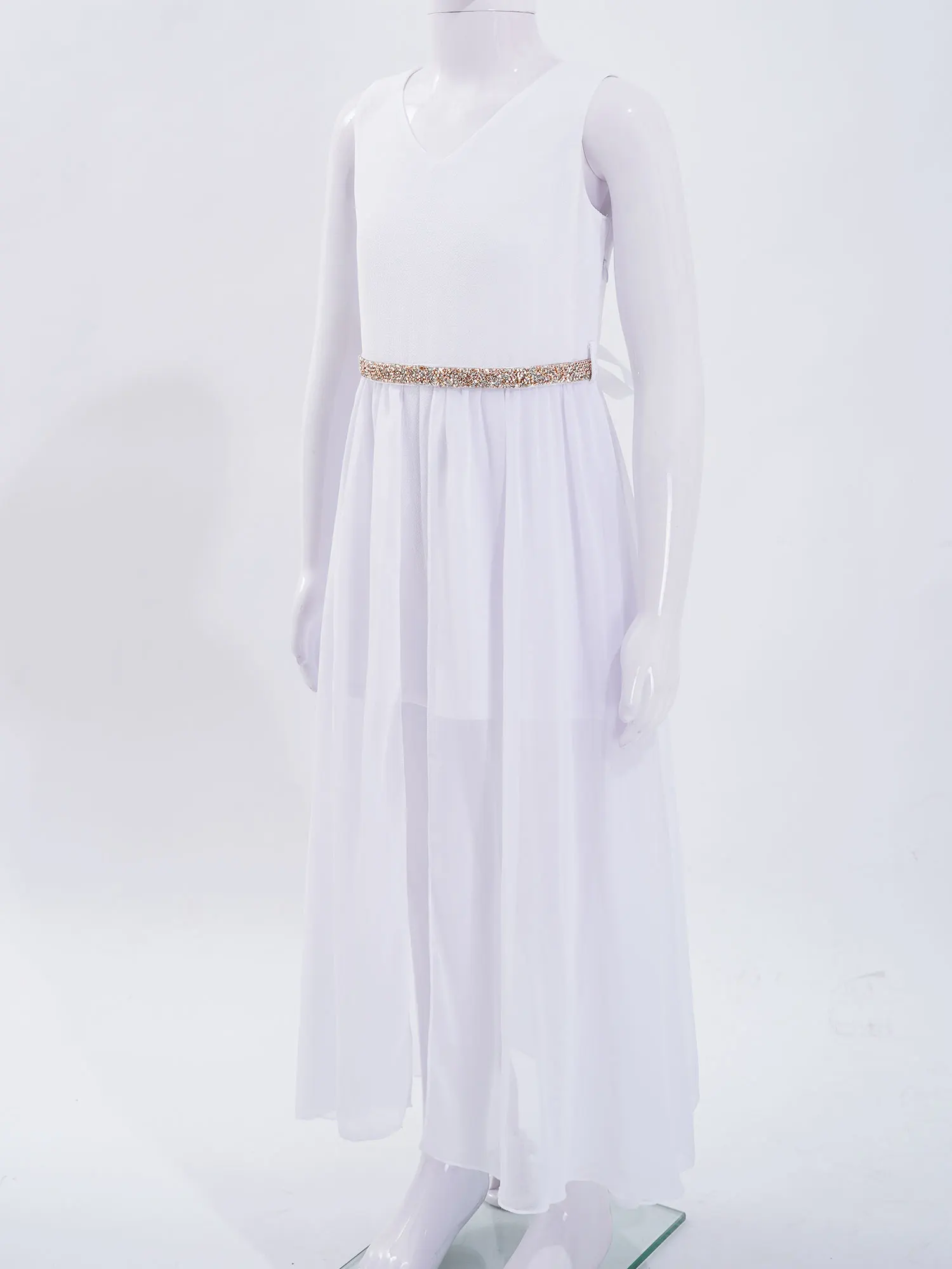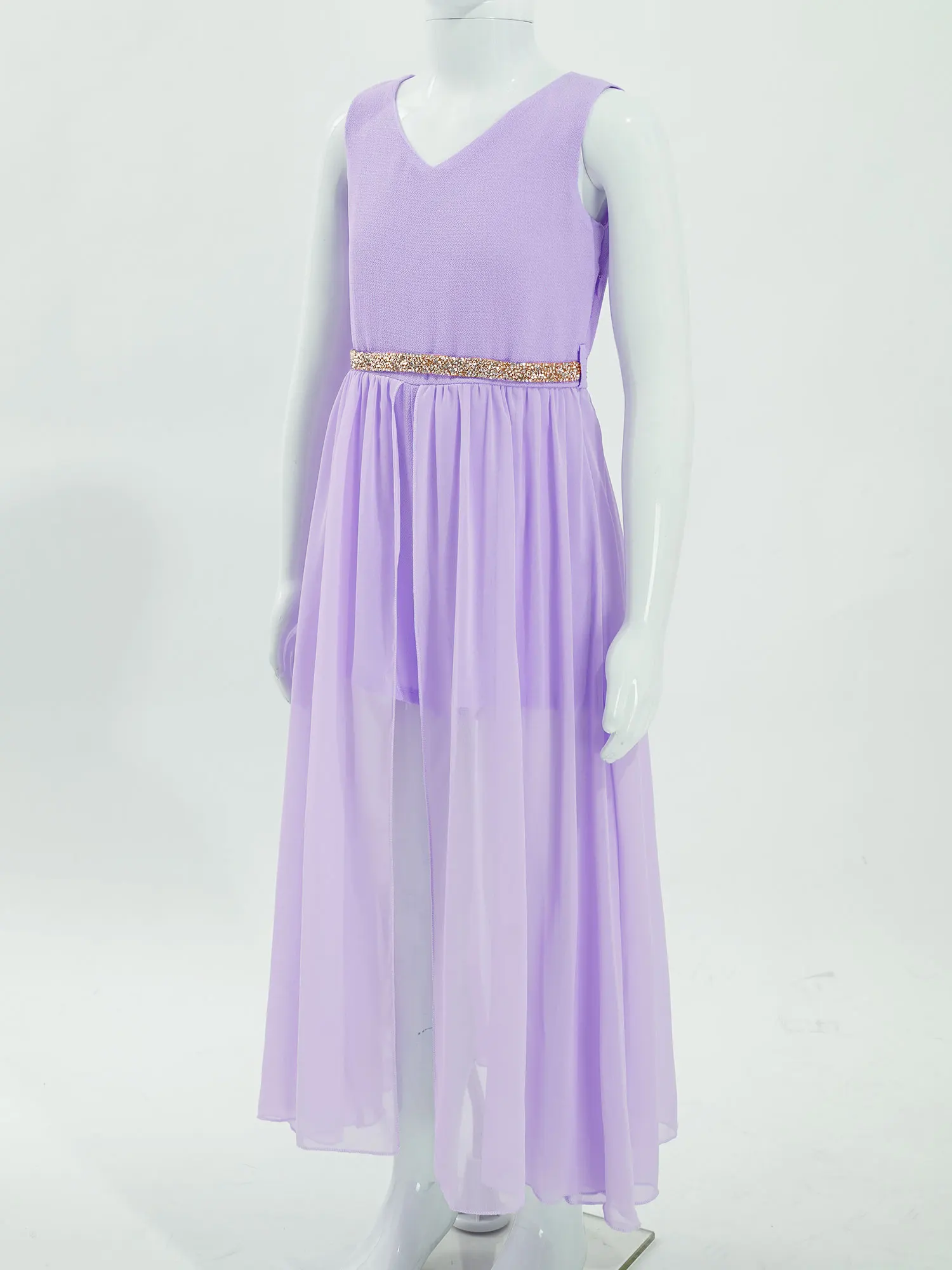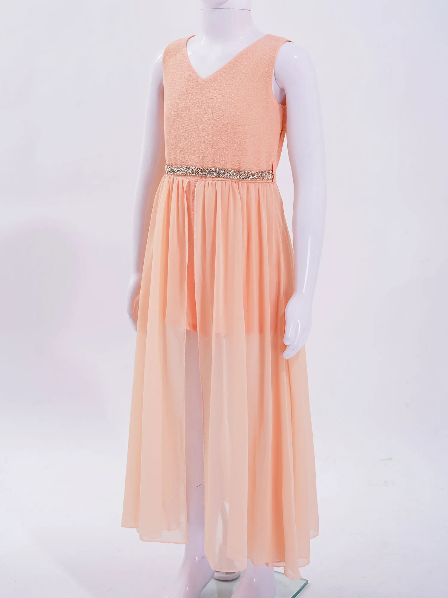Особенности:Платье-комбинезон изготовлено из полиэстера и шифона, ручная стирка.Таблица размеров означает возраст для девочек, но только для общего руководства.Без рукавов, с v-образным вырезом и застежкой на пуговицы; Лиф с атласной подкладкой для комфортного ношения. Замочная скважина сзади. Скрытая застежка-молния сбоку.1 слой Макси-длины с шифоновым наложением крепится вокруг талии. Поставляется с Стразы ремень для завершения установки. В комплект входит: Красивое и стильное платье для вашей девочки.Идеально подходит для школьных танцев, дней рождения, праздников, фотосессий, официальных мероприятий или других особых случаев.