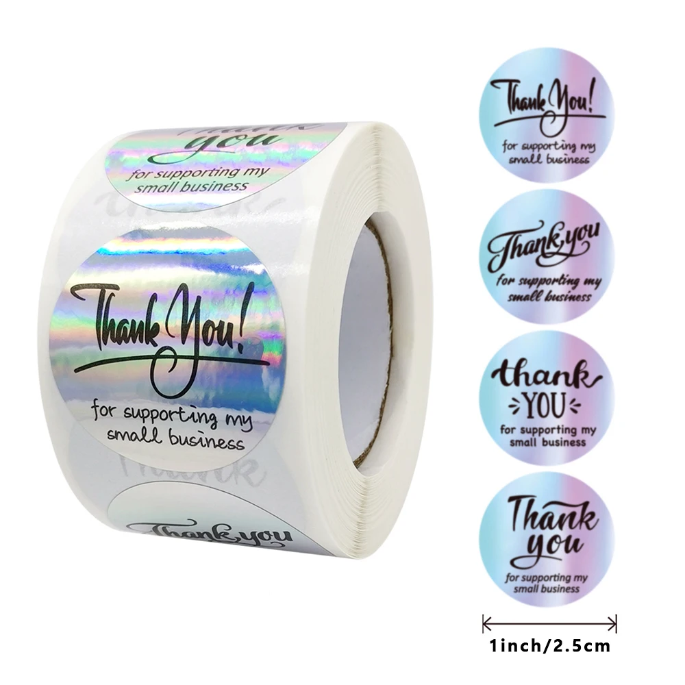 500 шт/рулон круглые лазерные благодарим вас наклейки для малого бизнеса подарочная упаковка водонепроницаемые наклейки для этикеток канцелярские принадлежности