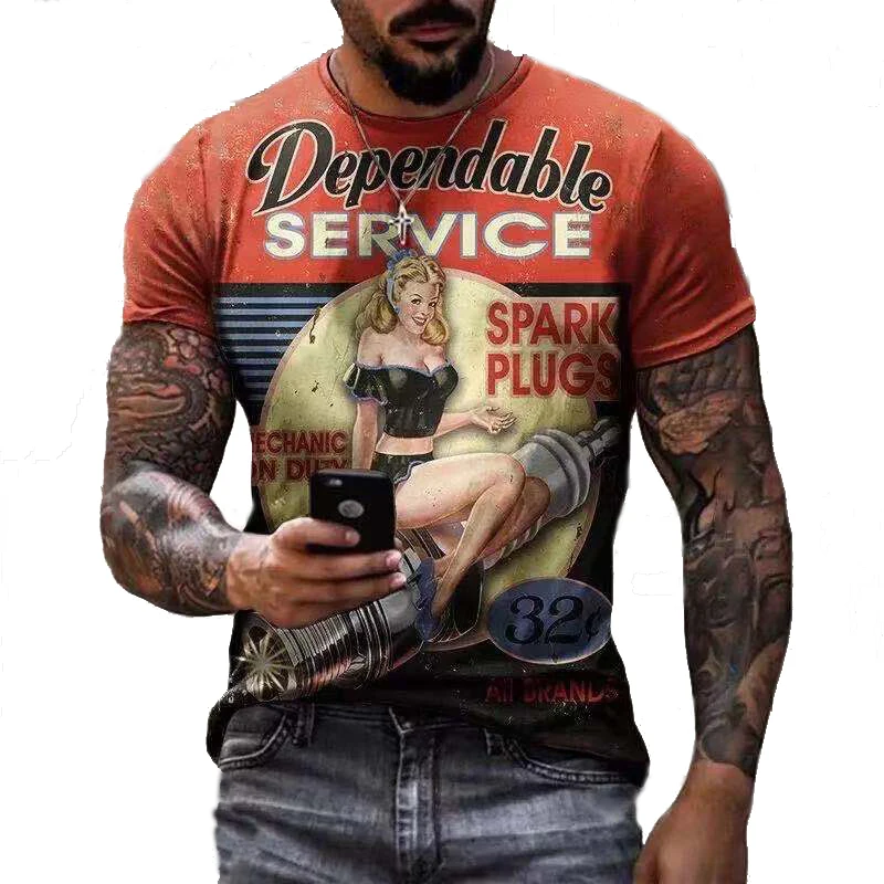 Футболка с круглым вырезом, коротким рукавом и 3D-принтом, 6XL