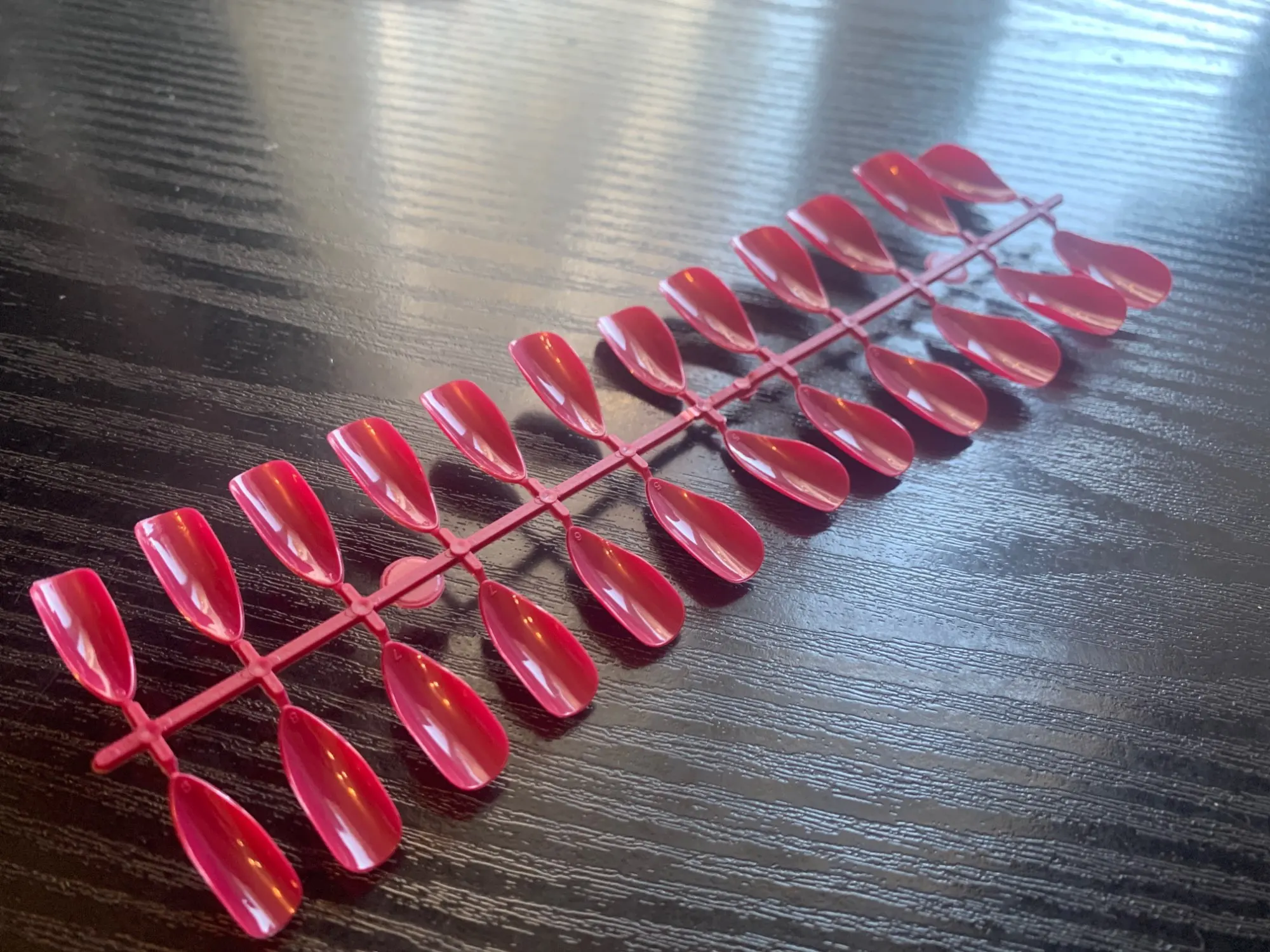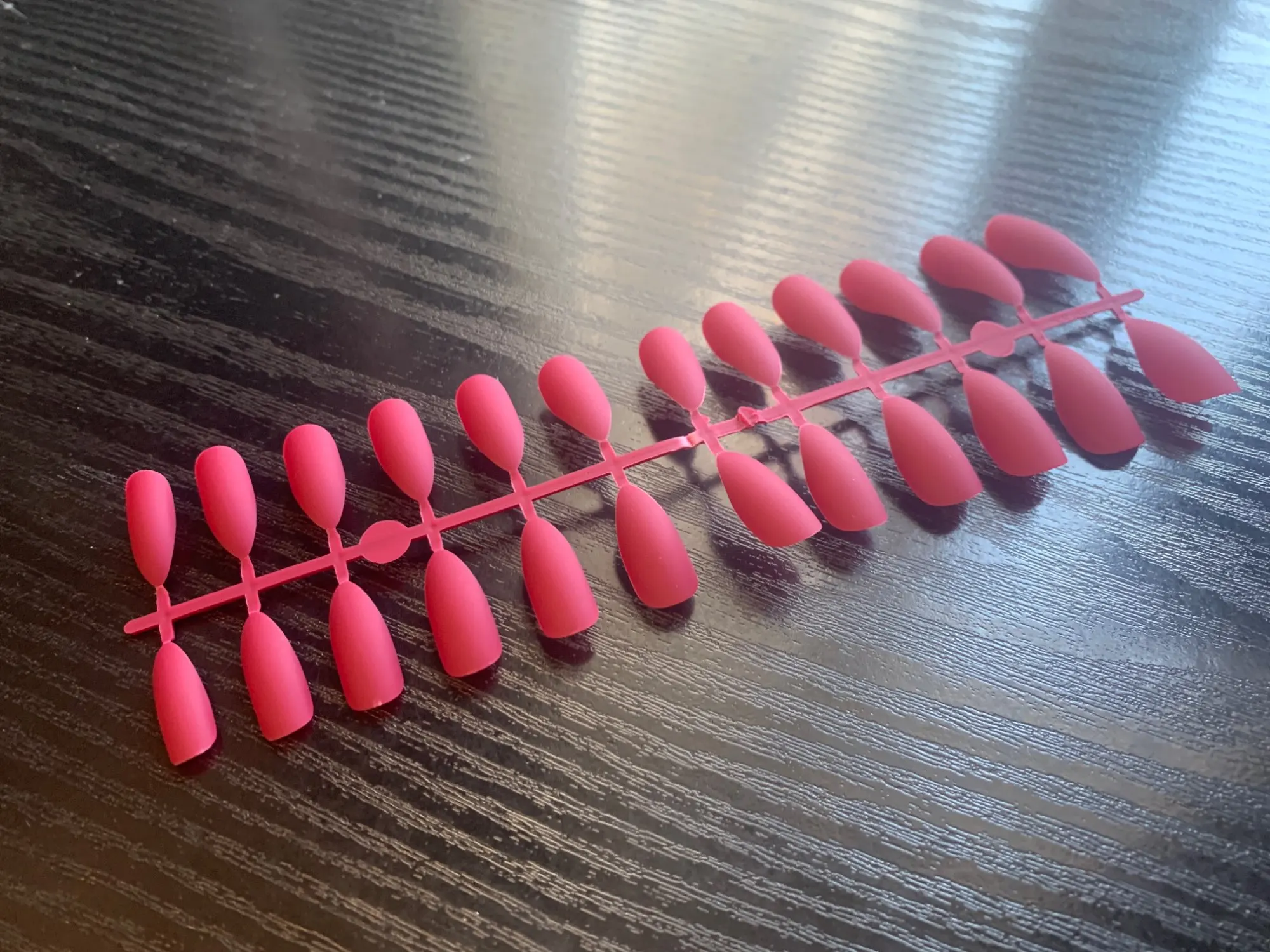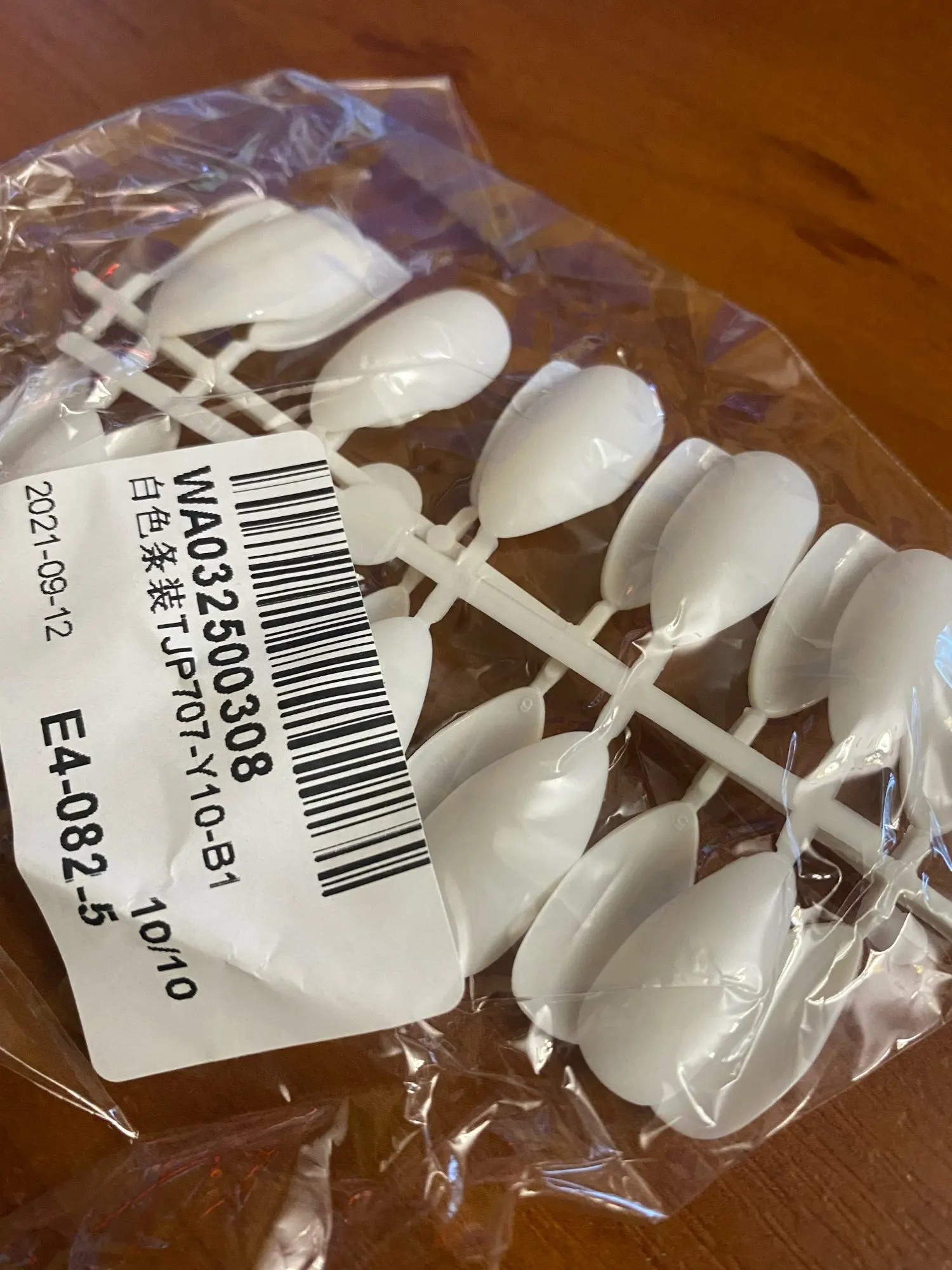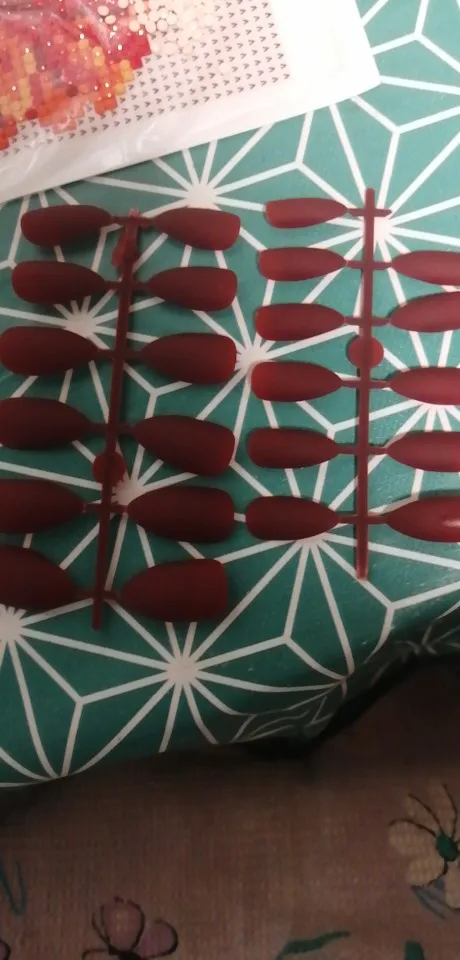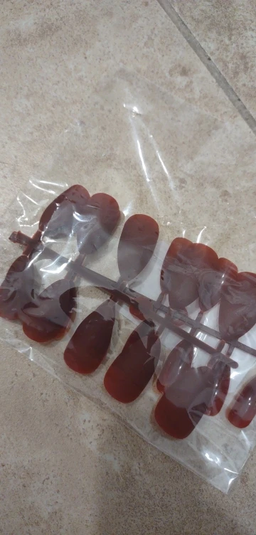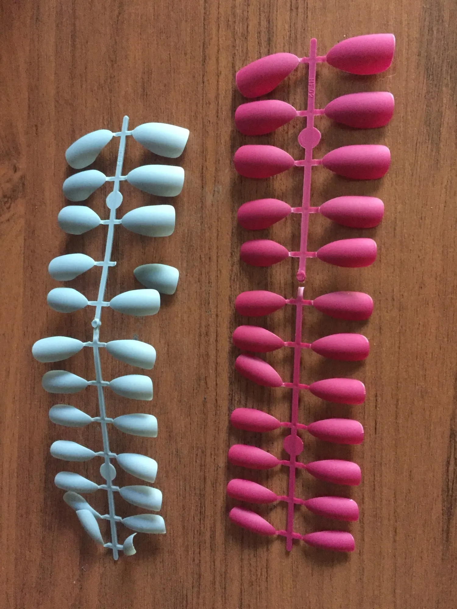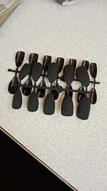 довольно хороший продукт . ноготочки чуток загнутые на конце . скорее всего это коготочки пх чем ноготочки . их у меня 21 штучек и мне довольно нравится . были на пласмасовых штучках как на фото только на флто оно одно целое а мне пришло две части . клея нету . я это поняла сразу потому заказала специальный дня ноготочков . запаковано великолепно и не один не пострадал . позже если не забуду напишу и добавлю отзыв о том как держаться и фото результат .