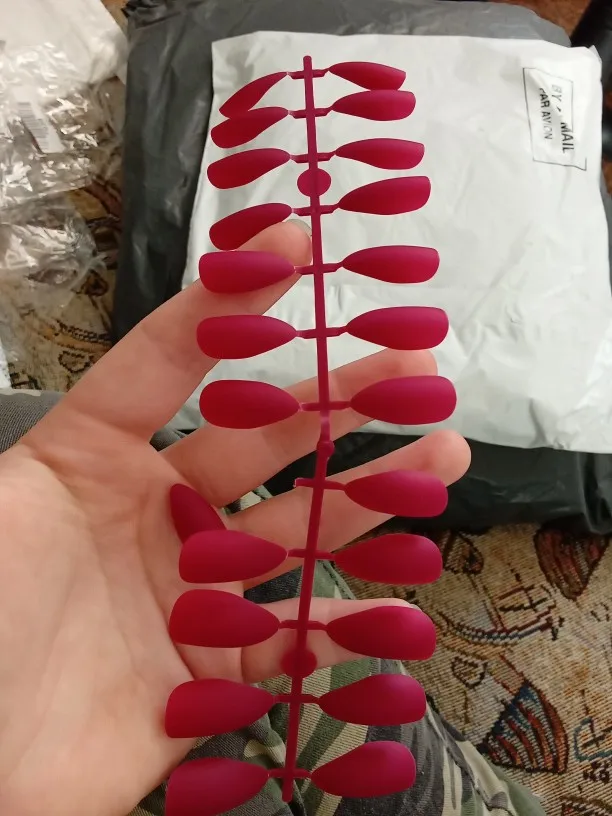 Ногти супер. Держатся уже 2день. Один правда подклеивать пришлось. Ну это пустяки. За такие копеечки. Заказывала рублей за 30. Это с промиком так вышло. Из минусов нет клея. Если есть супер клей то думаю можно приклееть. Главное когда клеете ногти не переливайте клей на ногтевую пластину а то заливается и под ноготь и на кутикулу вообщем капельки 2-3.