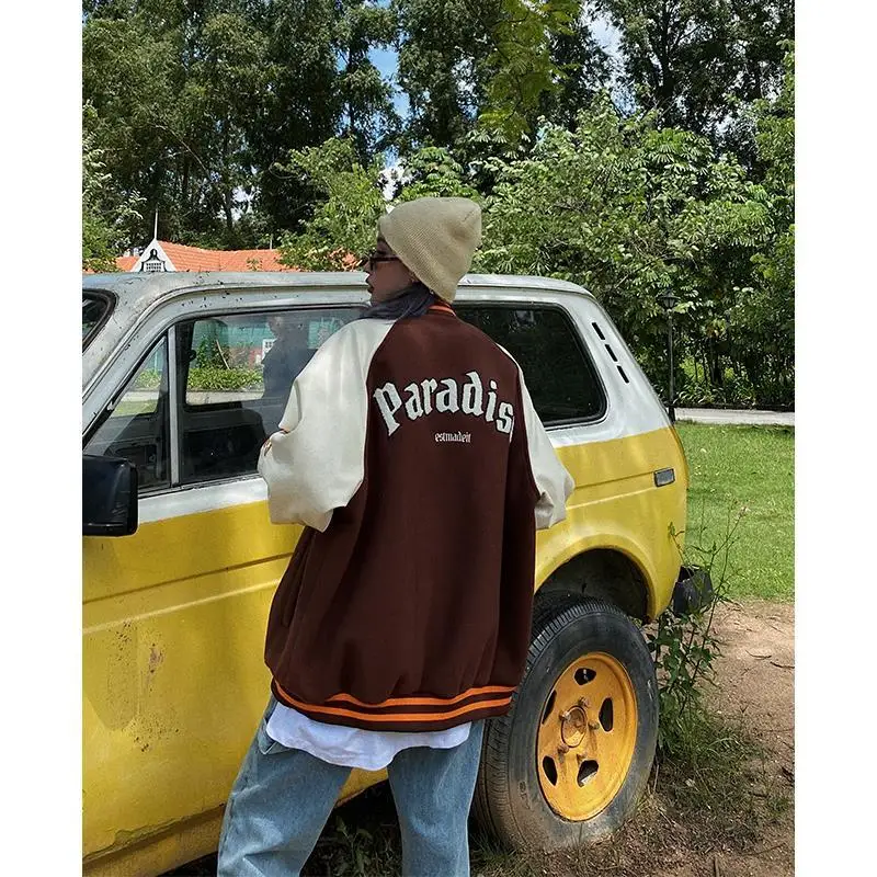 Бейсбольная униформа в стиле ретро для мужчин и женщин, уличная одежда оверсайз, стильная куртка из искусственной кожи в стиле Харадзюку, с контрастной строчкой, повседневные топы