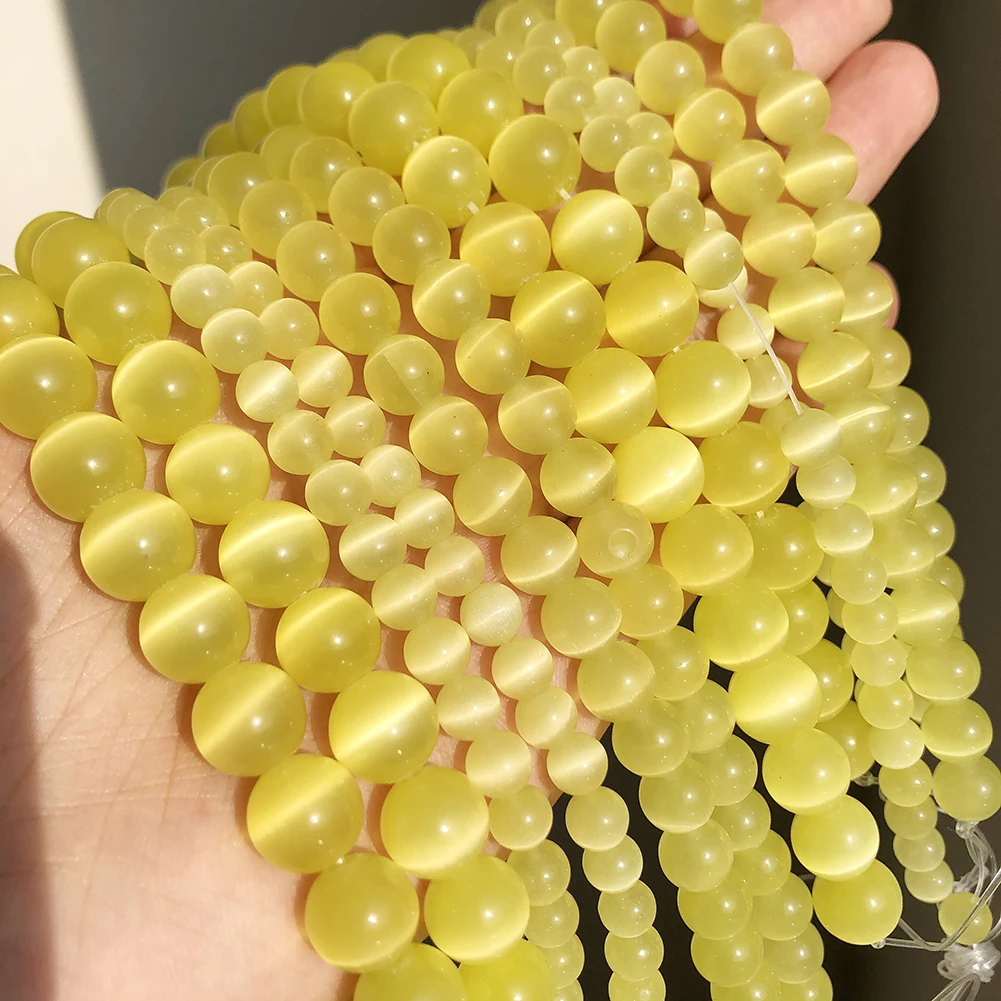 4681012 мм желтые солнцезащитные очки "кошачий глаз" опала бисер натуральный каменные бусины, ювелирные изделия Круглые бусины для изготовления ювелирных изделий, аксессуары
