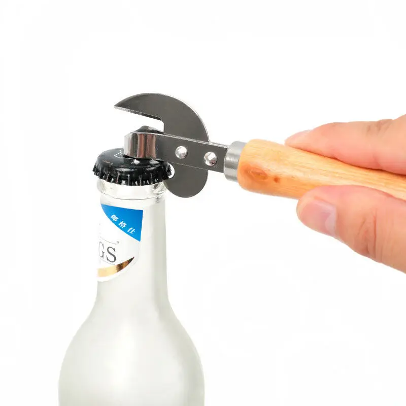 Деревянная ручка и материал из нержавеющей стали, консервный нож для двойного назначения, может легко открыть пиво, крышки для напитков, также может открыть банки, ваш открытый колпачок хороший помощник