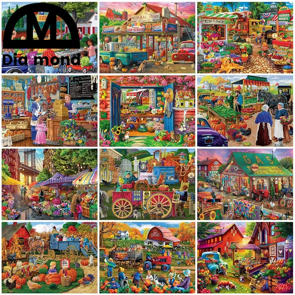 Алмазная живопись сделай сам, мозаика с изображением фермы, ландшаф...