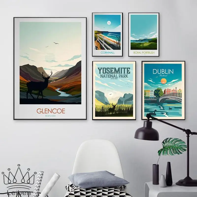 Ретро-постер туристического городского пейзажа, Дублин, Ирландия, глакоке, пейзаж на холсте, современное Скандинавское искусство, картина на стену