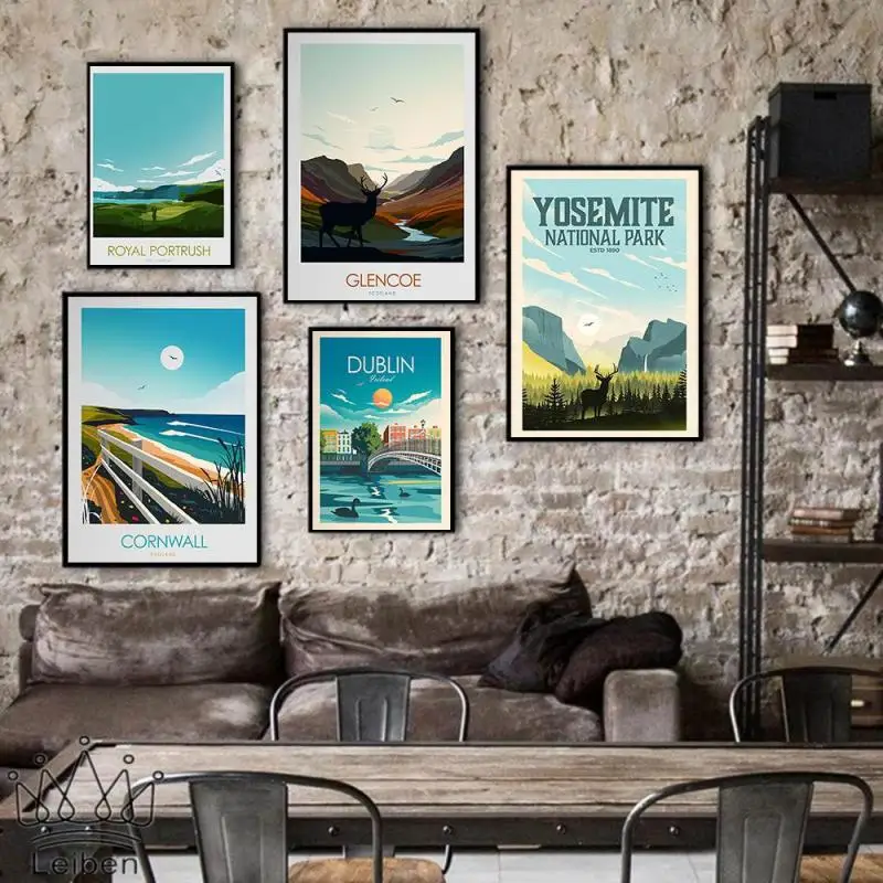 Винтажный постер в скандинавском стиле путешествия города пейзаж Ам...