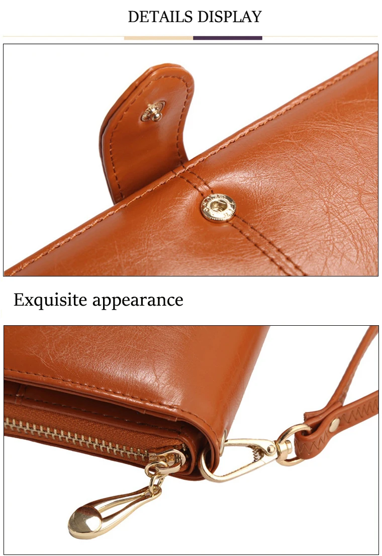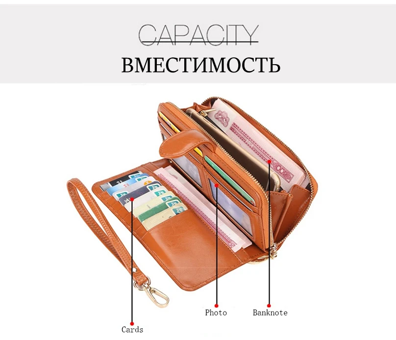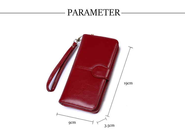 Новый женский кошелек из вощеной кожи, женские кошельки, вместительный кошелек на молнии с застежкой, Дамский Длинный клатч с ремешком на запястье, держатели для монет и карт