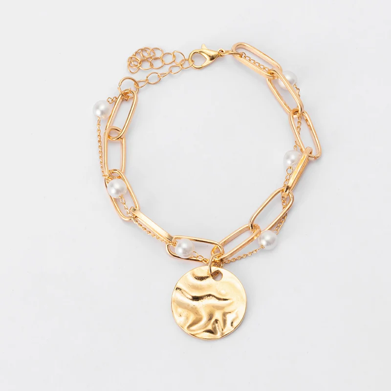 Модный трендовый простой металлический браслет для женщин 2021 с геометрическим жемчугом цепочка с фиксацией Индивидуальный Круглый узор очаровательные ювелирные изделия