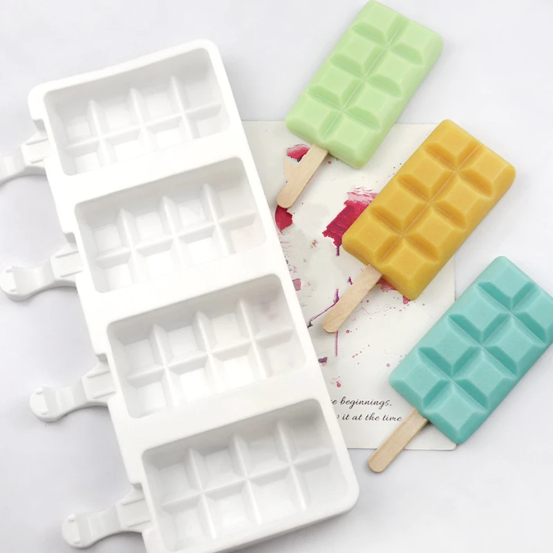 Квадратная силиконовая форма для мороженого, 4 отверстия, бочка для фруктового льда, форма для домашнего десерта, летний морозильник форма для изготовления фруктового сока
