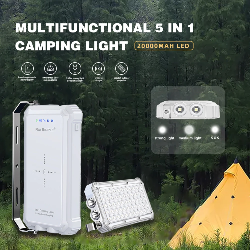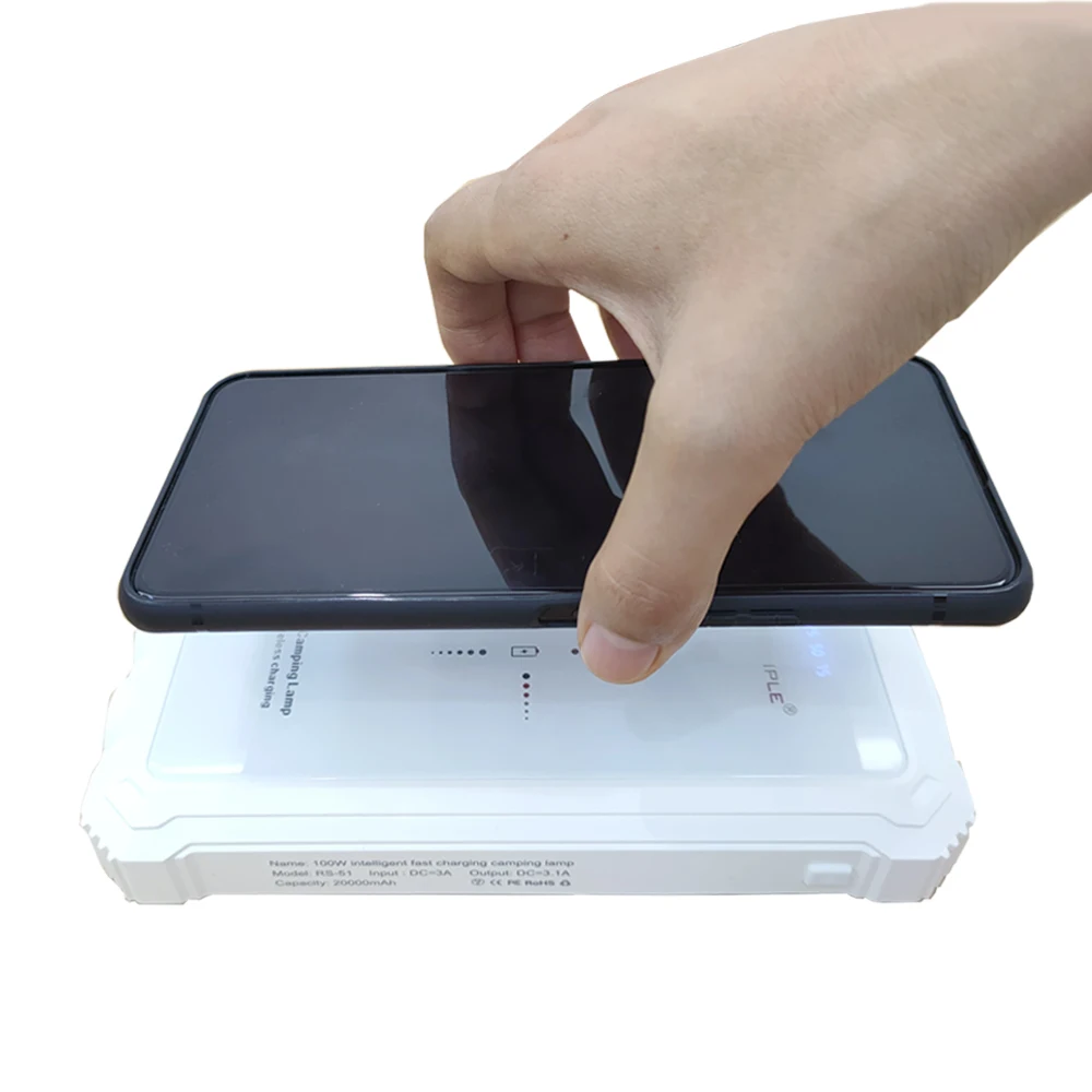 Название: 5в1 Многофункциональный фонарь для кемпингаПункты продажи: материал PC + ABS + Гальванизированный металлический уровень яркости сильный светильник-средний Светильник-слабый светильник-вспышка SOSСпецификация: размер 90*95*28 мм Емкость батареи 20000 мАч полимерный аккумулятор люмен 5500 лм QI Беспроводное зарядное устройство 5 Вт цвет белый и черный светодиодный расход 100 Вт светодиодный бисер Кол-во 55 шт Время работы 8-24 часа время зарядки 8-12hours вход Тип-C 5V-3.0A вспышка светильник потребление 240LM-2W Выход USB1:5V-3.1A USB 2: 5V-3.1A Тип-C :5V-3.0A Цвет температуры белый светильник: 6500k теплый светильник: 3000k теплый белый светильник: 5000k расход белый светильник: 80w Теплый светильник: 50w теплый белый Светильник: 100 Вт