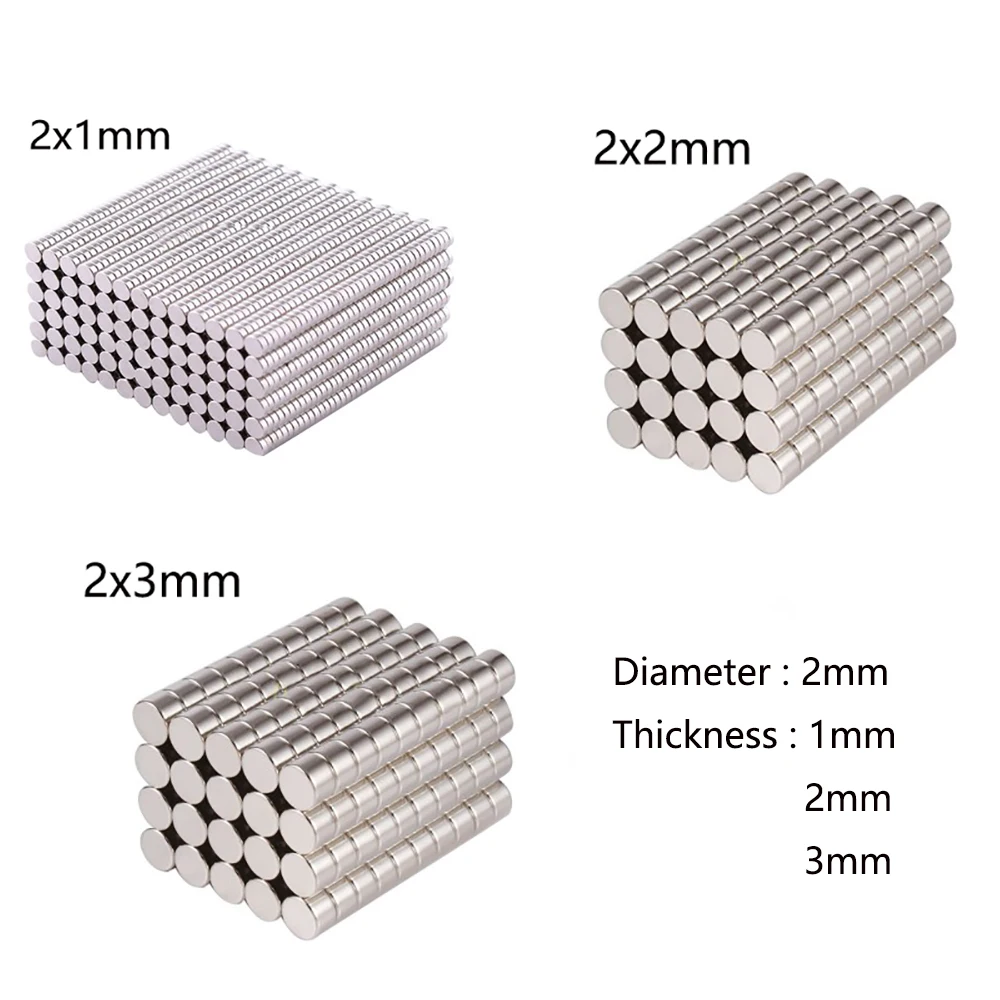 Мощные круглые магниты N35, редкоземельный неодимовый магнит, постоянный магнит, диаметр 2 мм, толщина 1 мм, 2 мм, 3 мм