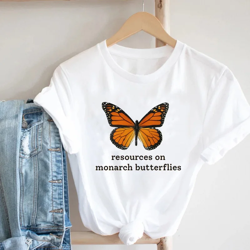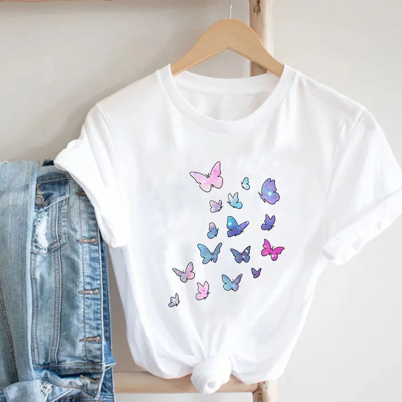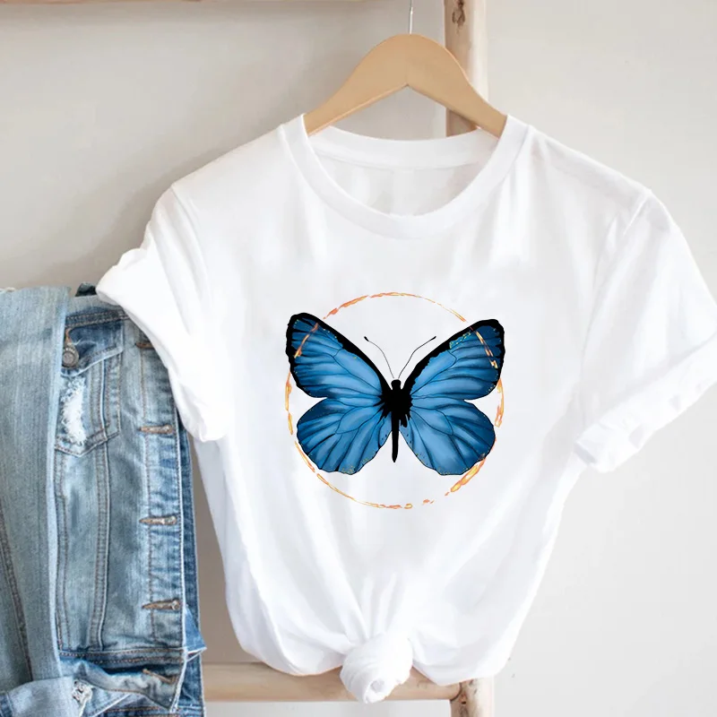 Футболка женская с круглым вырезом, модный топ с принтом бабочки, с коротким рукавом, летняя рубашка