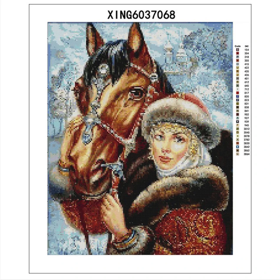 Картина 5d "сделай сам", квадратнаякруглая картина с изображением женщины лошади для вышивки, зимний портрет, картина для стразы, размер холста
