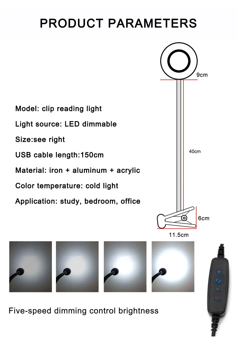 Очень хорошая Ночная книжная лампа, питание от usb и регулировка яркости