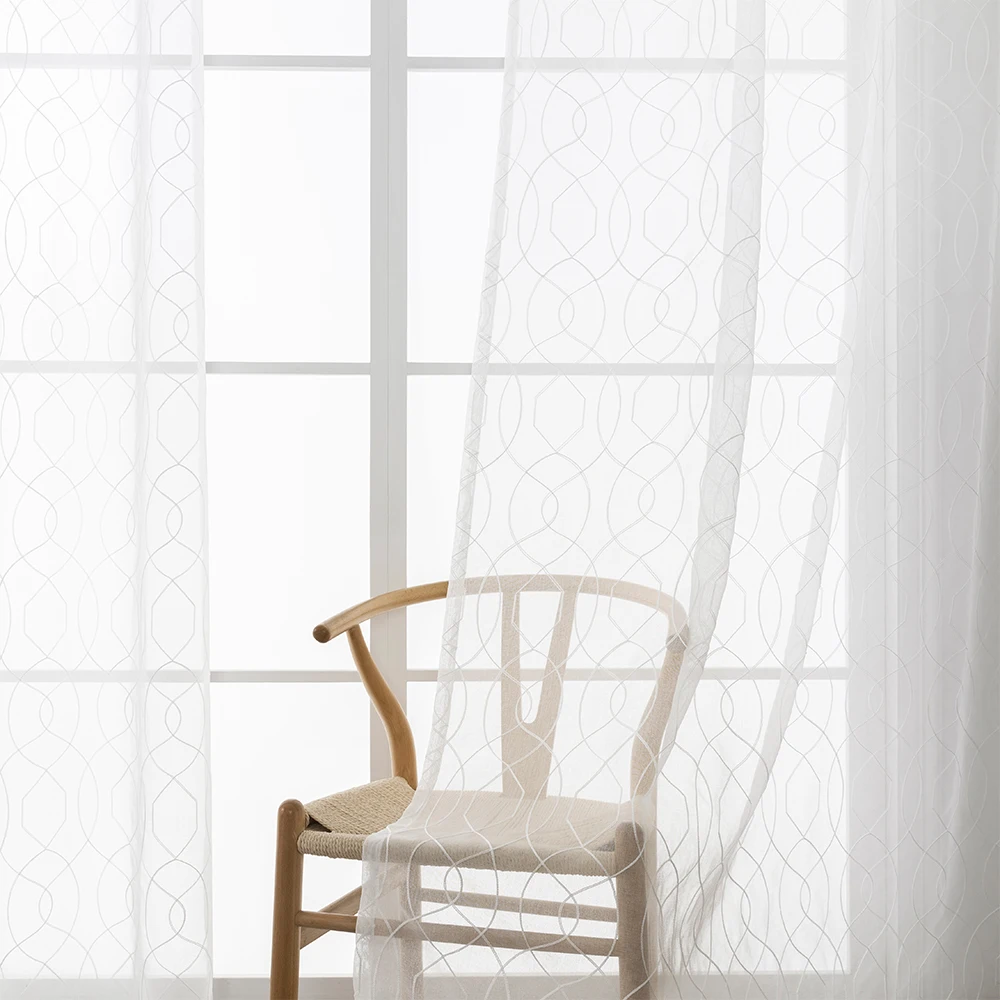 Однотонные белые тюлевые шторы CDIY для гостиной, спальни, вышитые ...