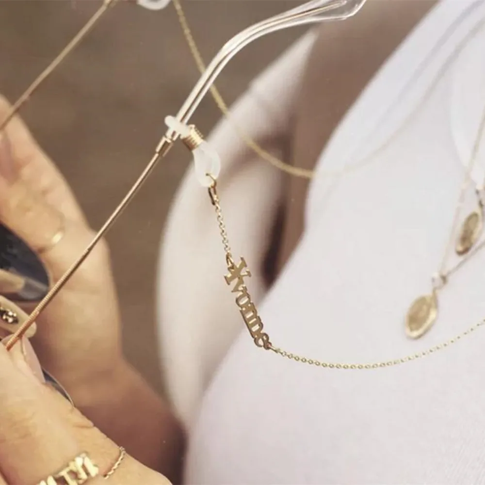 Цепочка для очков на заказ, ожерелье из нержавеющей стали с именем под заказ, цепочка для очков, шнурок для солнцезащитных очков, бижутерия
