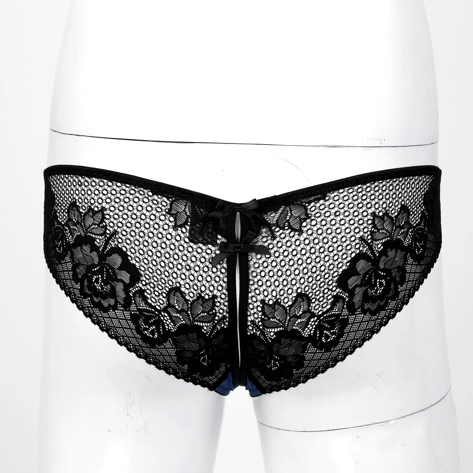 Трусы мужские кружевные с цветочным принтом, нижнее белье с вырезами, трусы-брифы с бантом, эластичный пояс, нижнее белье