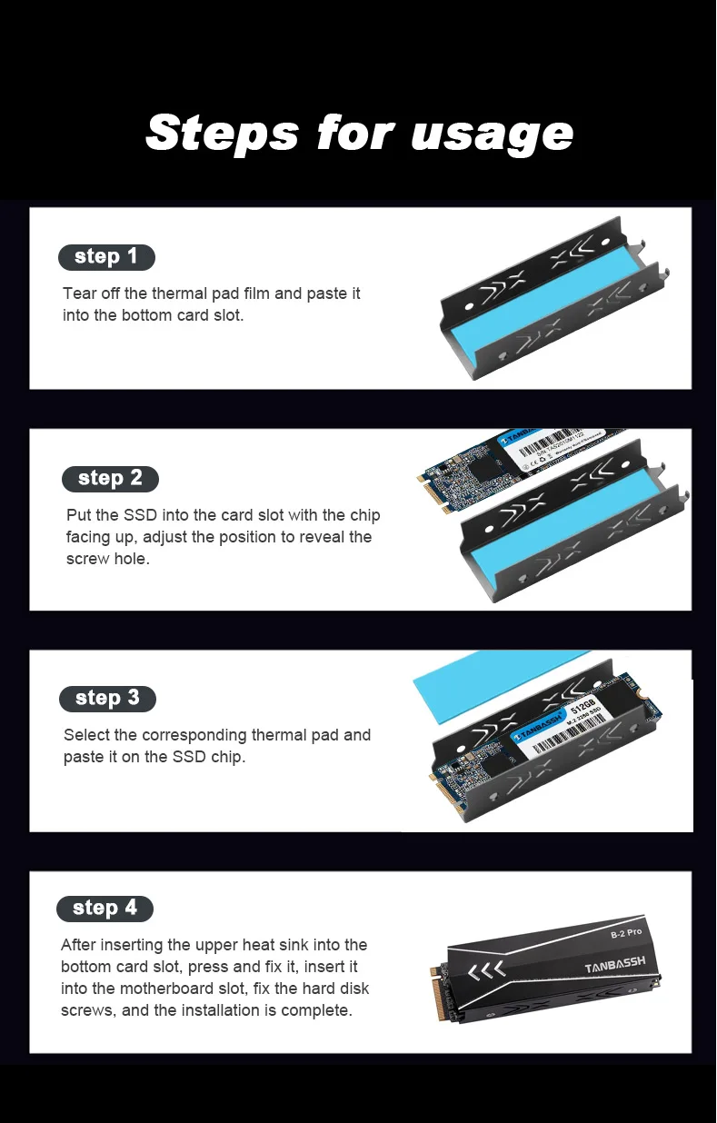 TANBASSH M.2 2280 радиатор NGFF NVME твердотельный жесткий диск алюминиевый радиатор с термопрокладкой TU160 B2 PRO для компьютера