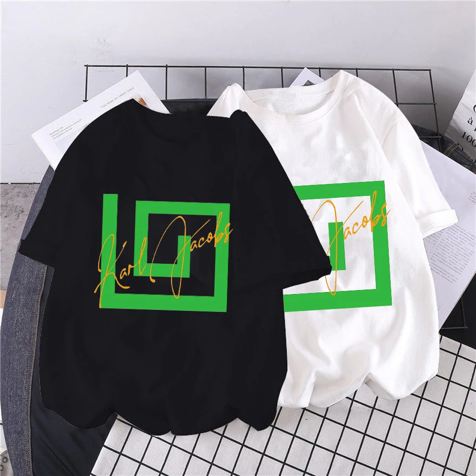 Женская футболка с принтом Карла Якобса, Повседневная Свободная футболка Харадзюку с круглым вырезом и коротким рукавом, лето 2021