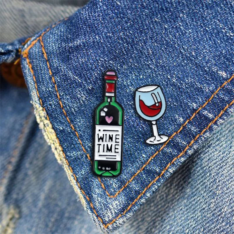 Винная бутылка "время" эмалированные броши для винного стекла булав...
