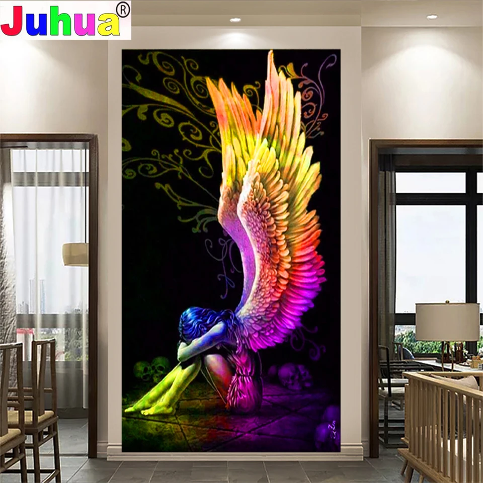Diy 5d алмазная картина ангел печали вышивка стразами девушка камни в форме ромба Круглые абстрактные Цветные Крылья Алмазная мозаика рукоделие