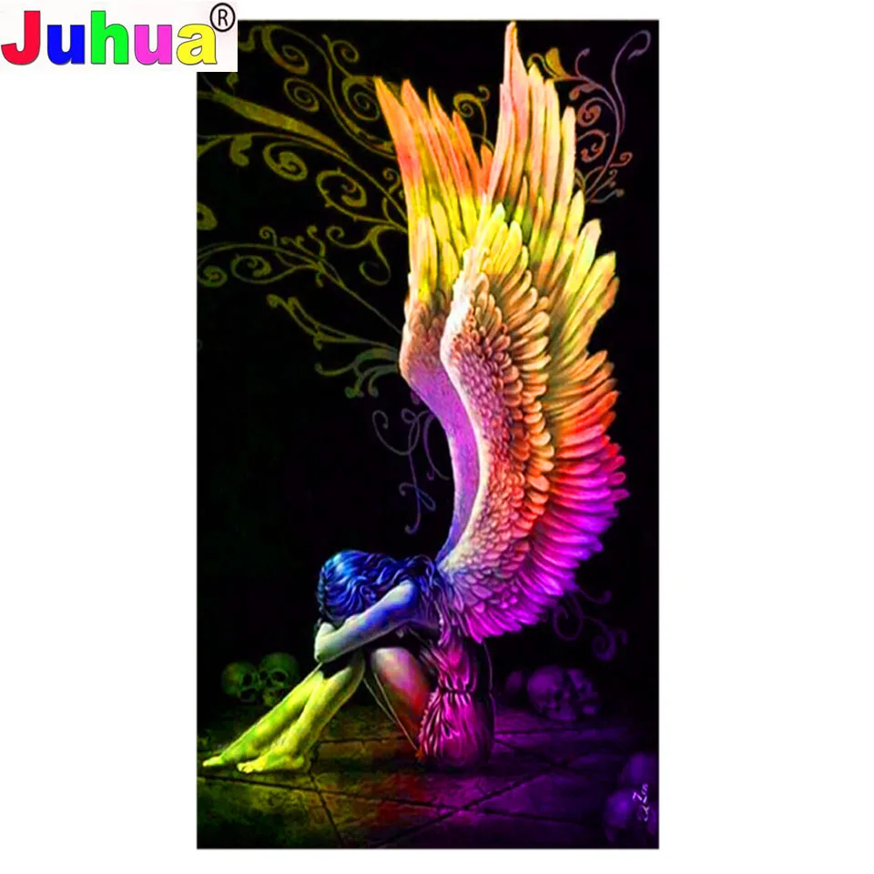 Diy 5d алмазная картина ангел печаль вышивка стразами Девушка полный квадрат Круглые абстрактные красочные крылья Алмазная мозаика рукоделие