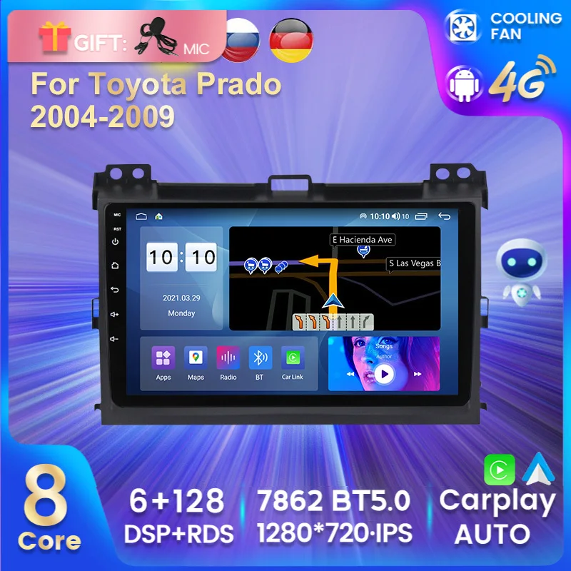 MEKEDE IPS 6 + 128G DSP Android11 автомобильный радиоприемник, мультимедийный плеер для Toyota Prado 2004-2009, GPS-навигация, встроенный Carplay Авто WIFI