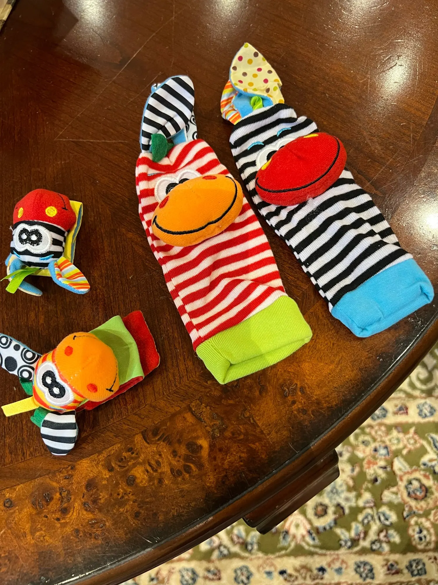 Погремушки детские мягкие плюшевые, 4 шт., наручный браслет, Мультяшные детские развивающие игрушки для новорожденных, 0-24 месяца