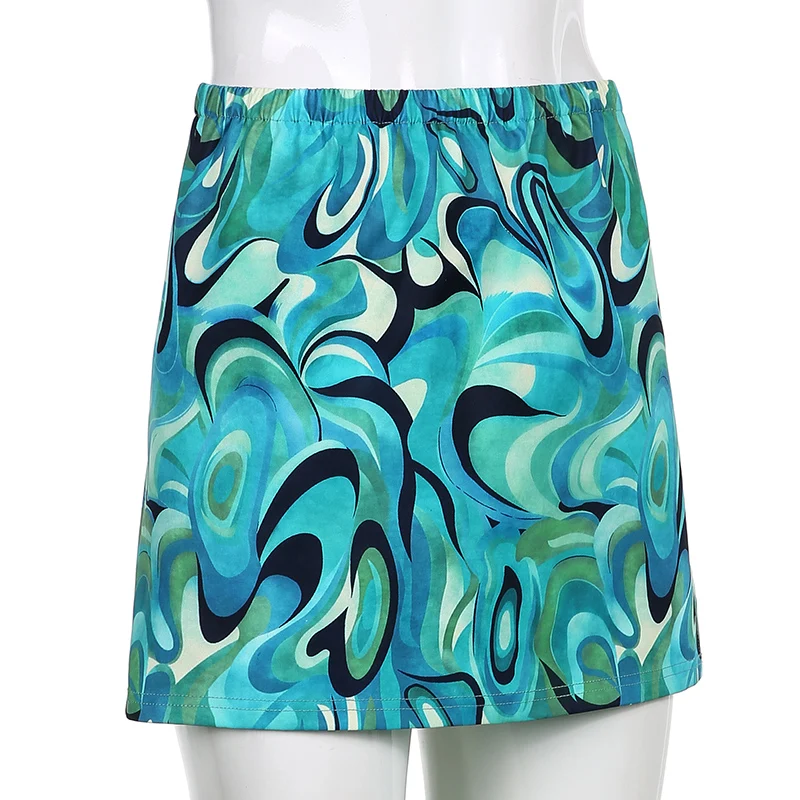 Пейсли зеленые юбки y2k эстетическое мини юбки для женщин, летние п...