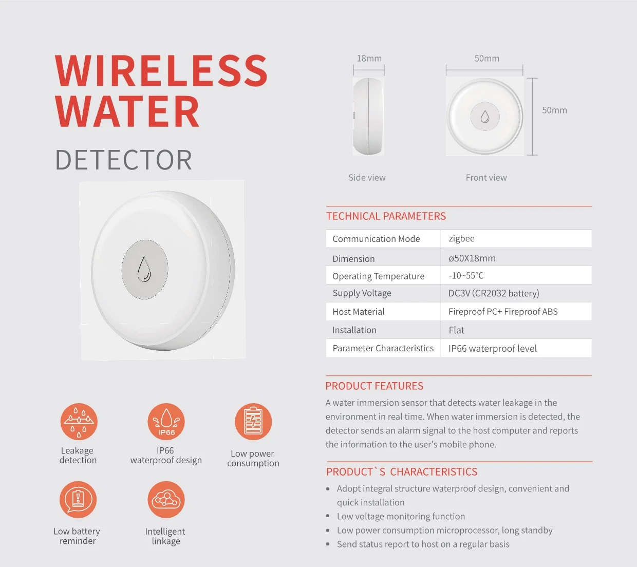 Датчик утечки воды Zigbee, беспроводной детектор наводнения датчик ...