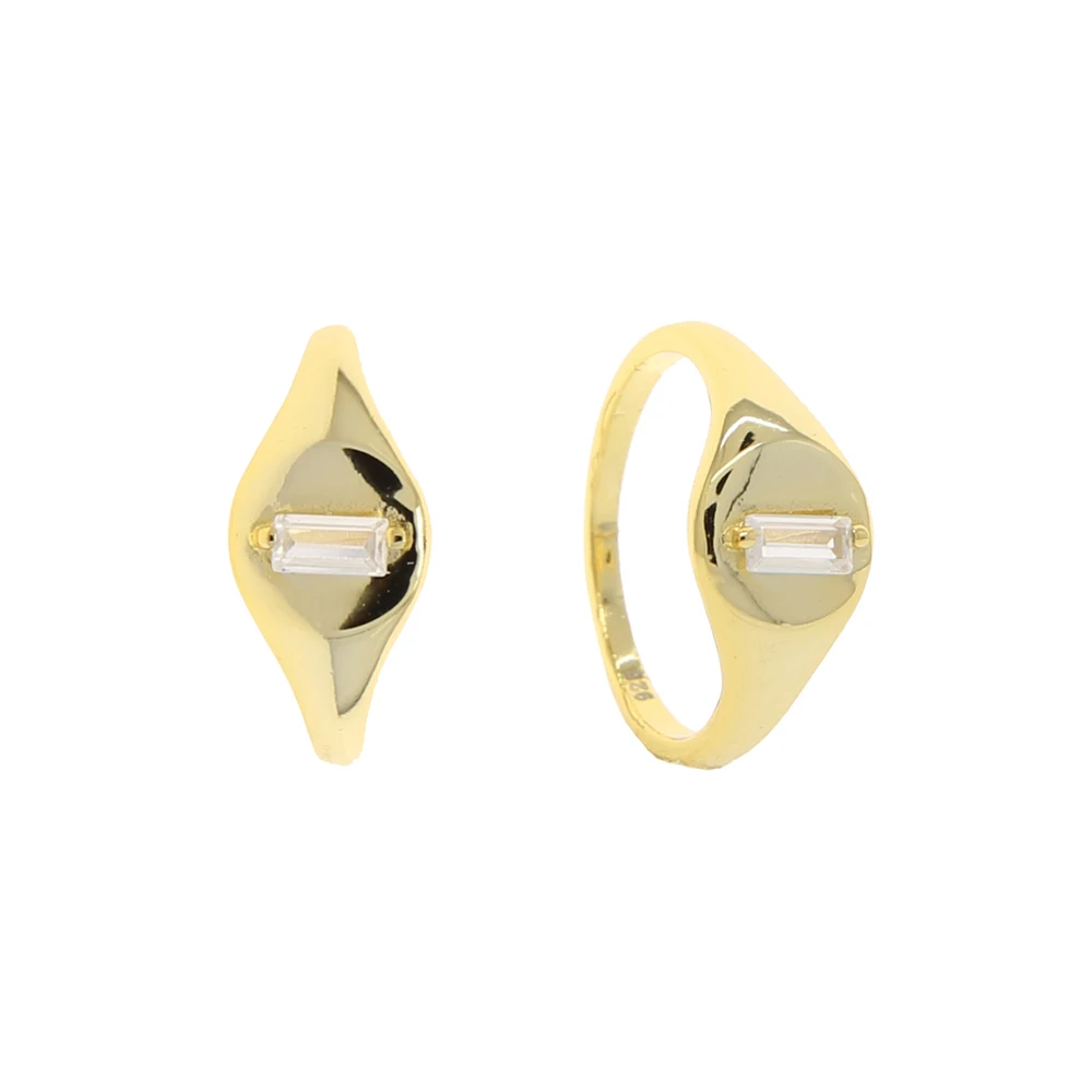 Геометрическая одной прямоугольник фианит перстень с золотым покрытием 925 пробы Серебряное кольцо для Для женщин